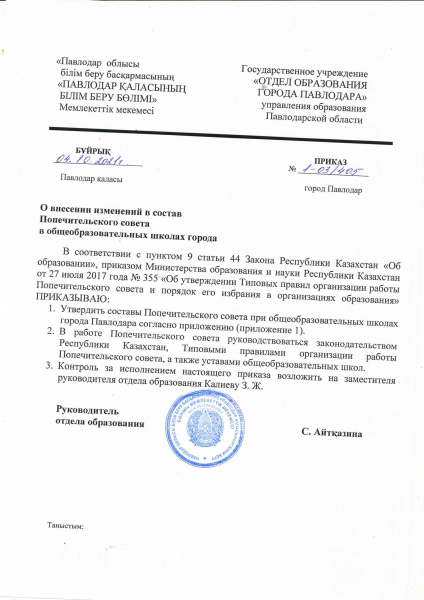 Приказ "О внесении изменений в состав Попечительского совета в общеобразовательных школах города"