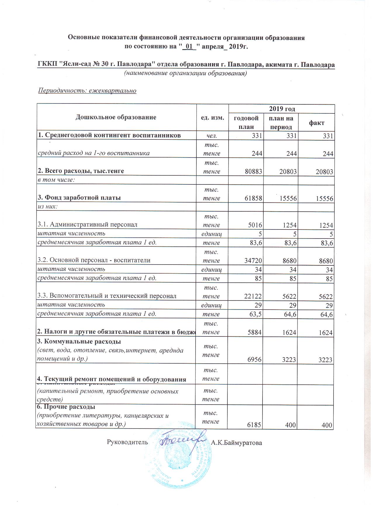 Основные показатели финансовой деятельности организации на апрель месяц | Скачать |