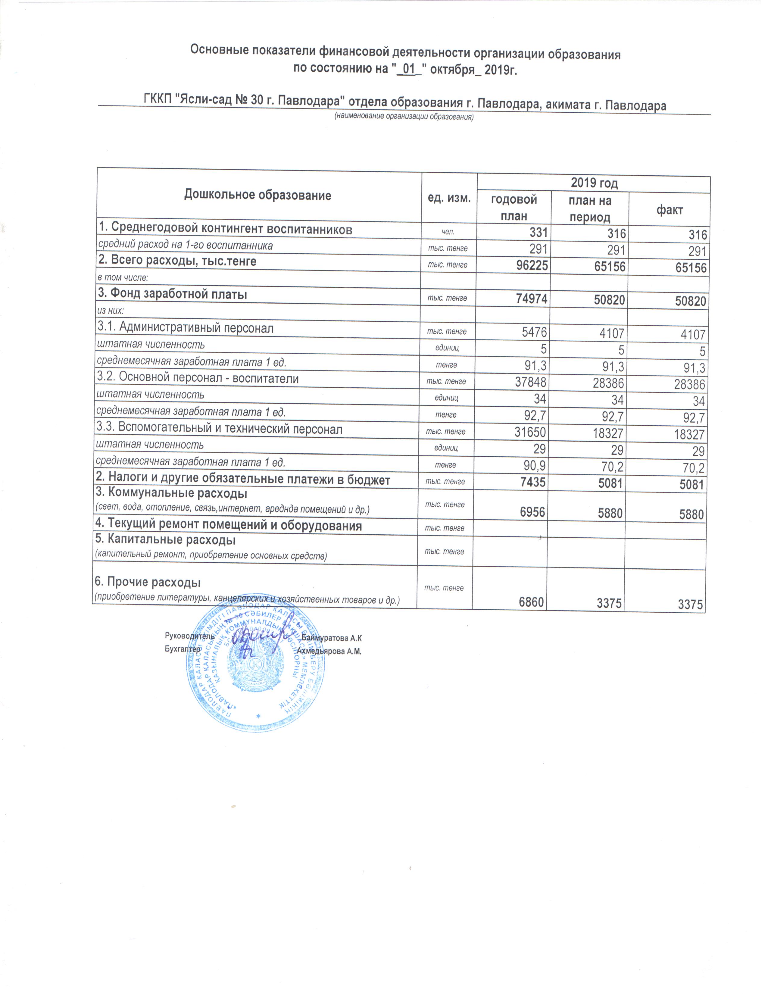 Основные показатели финансовой деятельности организации на август месяц | Скачать |