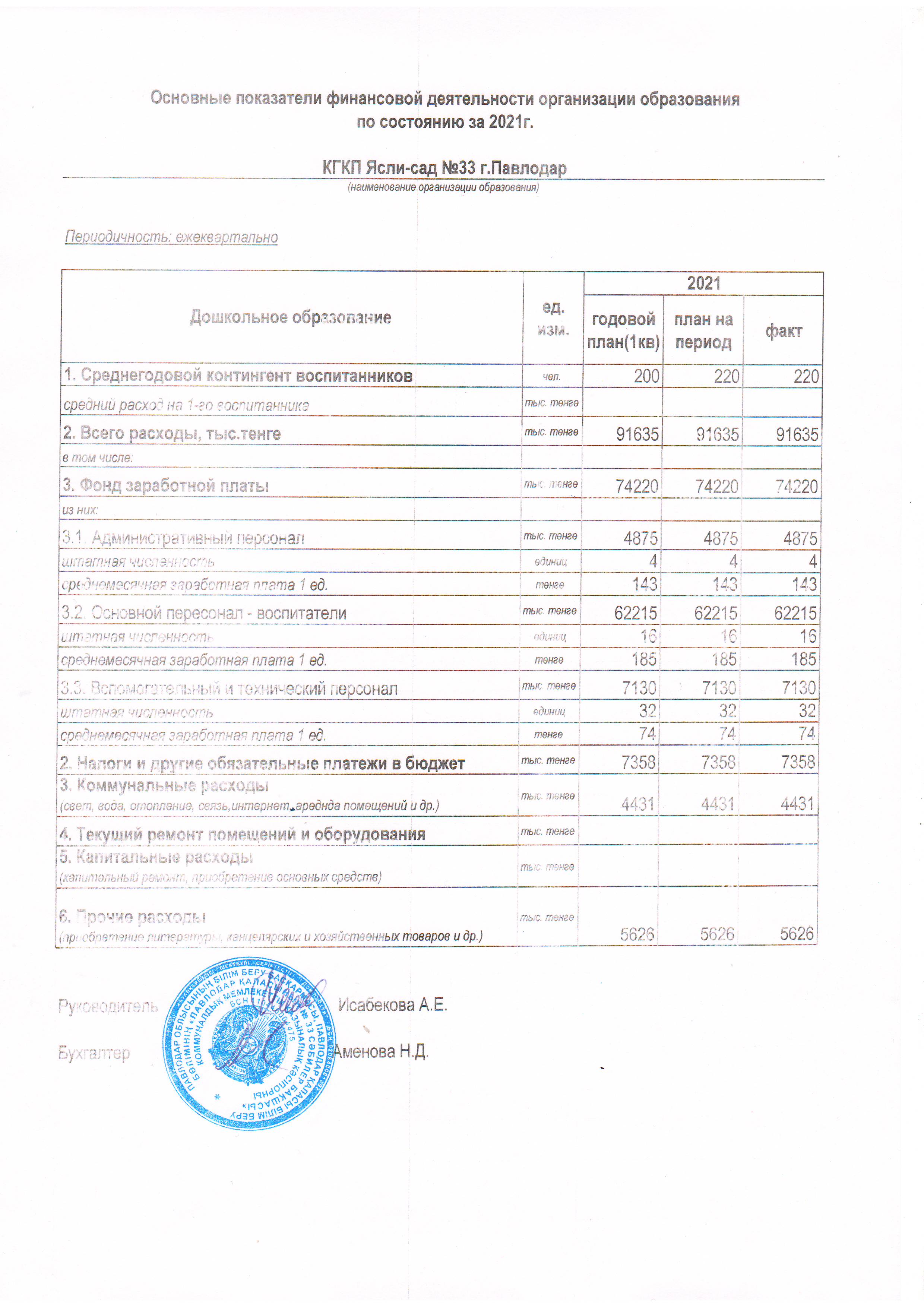 Павлодар облысының білім беру басқармасы, Павлодар қаласы білім беру бөлімінің "Павлодар қаласының №33 сәбилер бақшасы" коммуналдық мемлекеттік қазыналық кәсіпорны