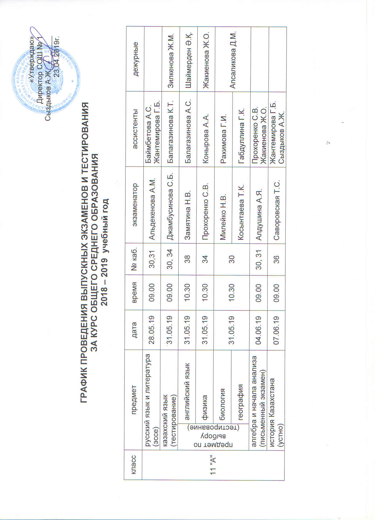График проведения выпускных экзаменов 11 класс | Скачать |