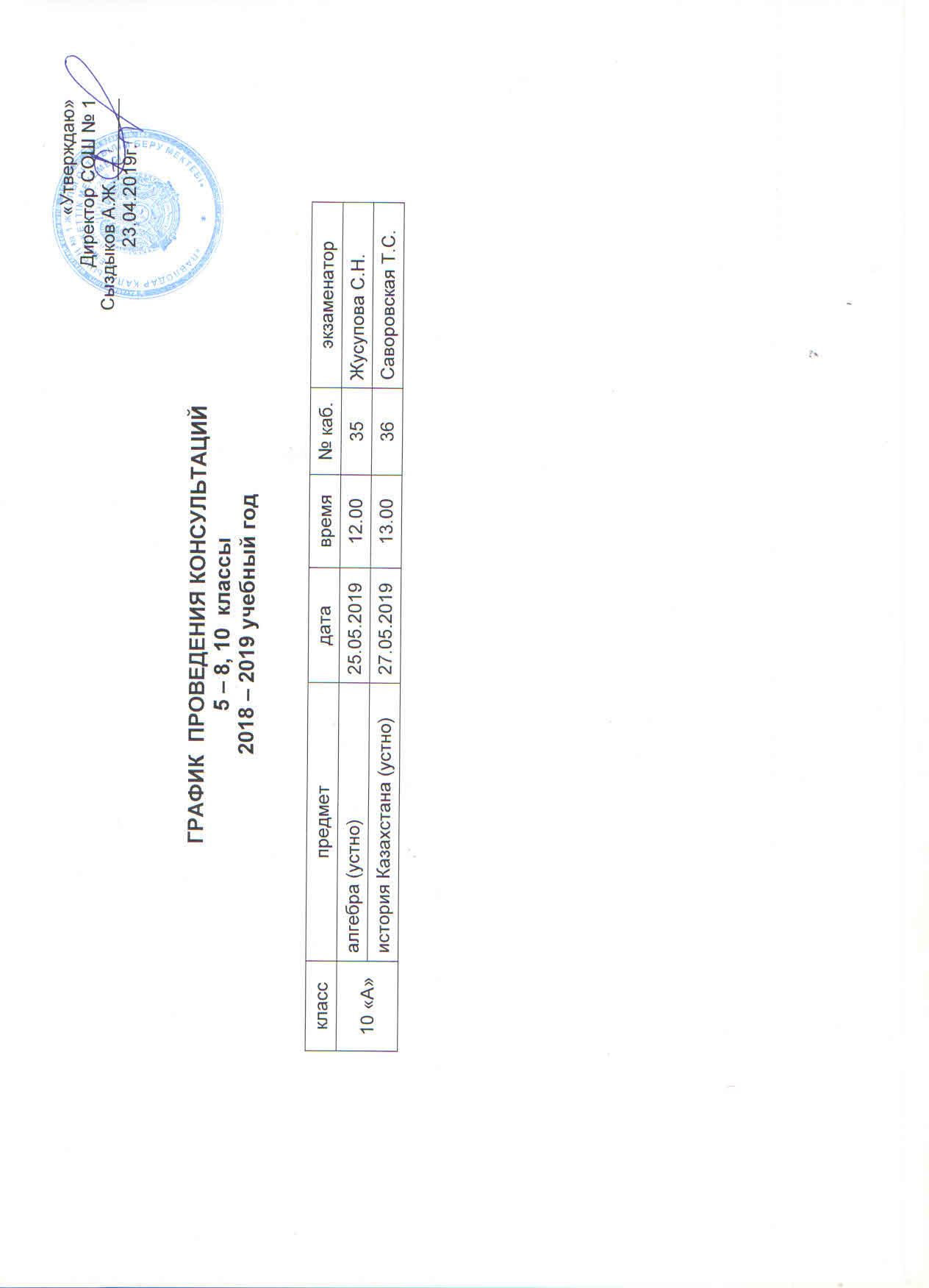 График проведения консультаций 10 класс