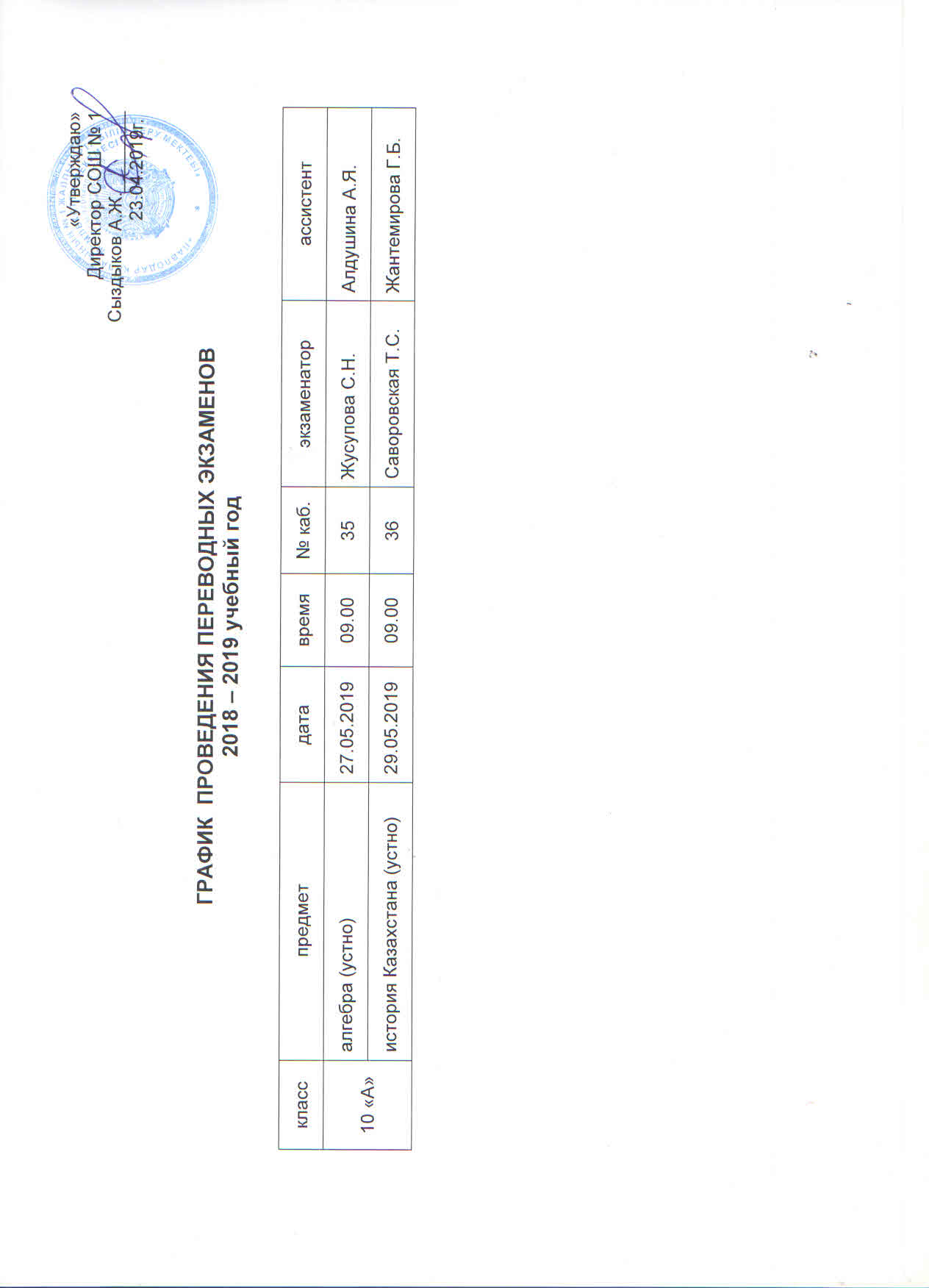 График проведения переводных экзаменов 10 класс