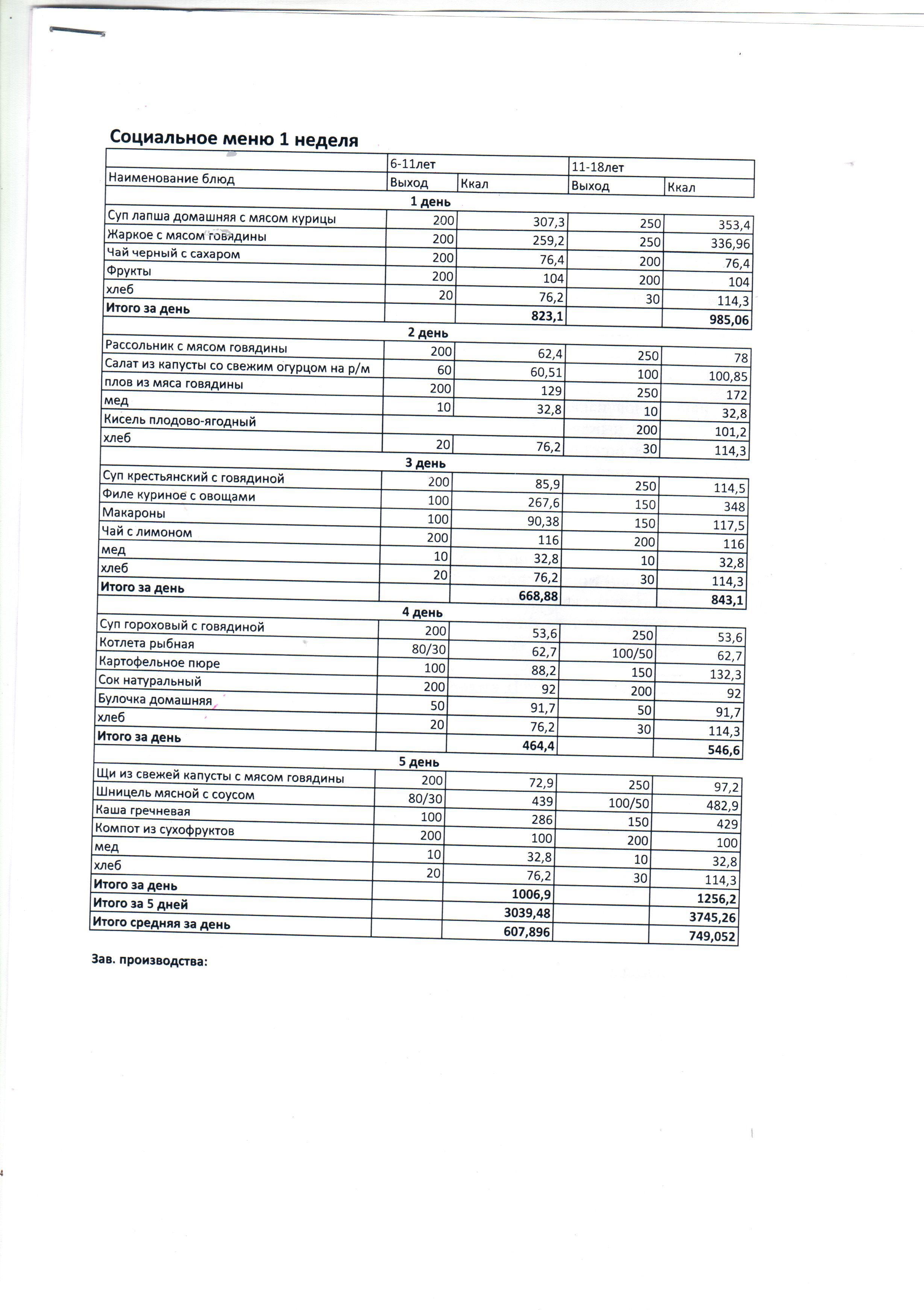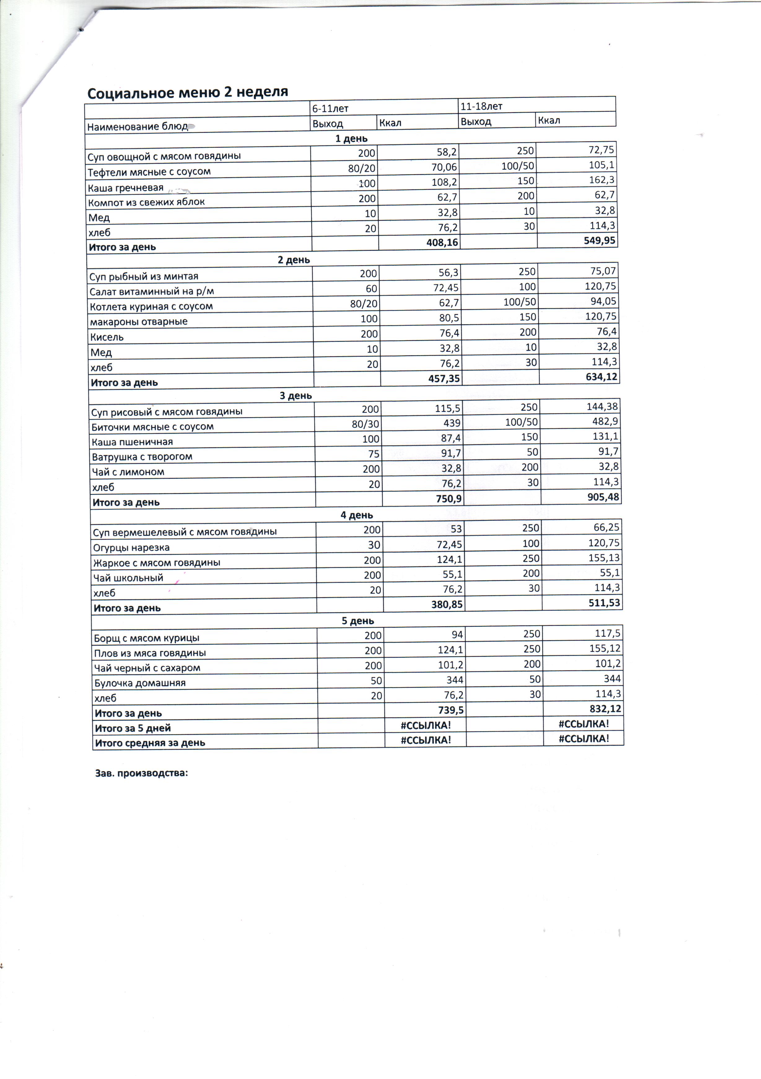 Социальное меню 1неделю | Скачать |