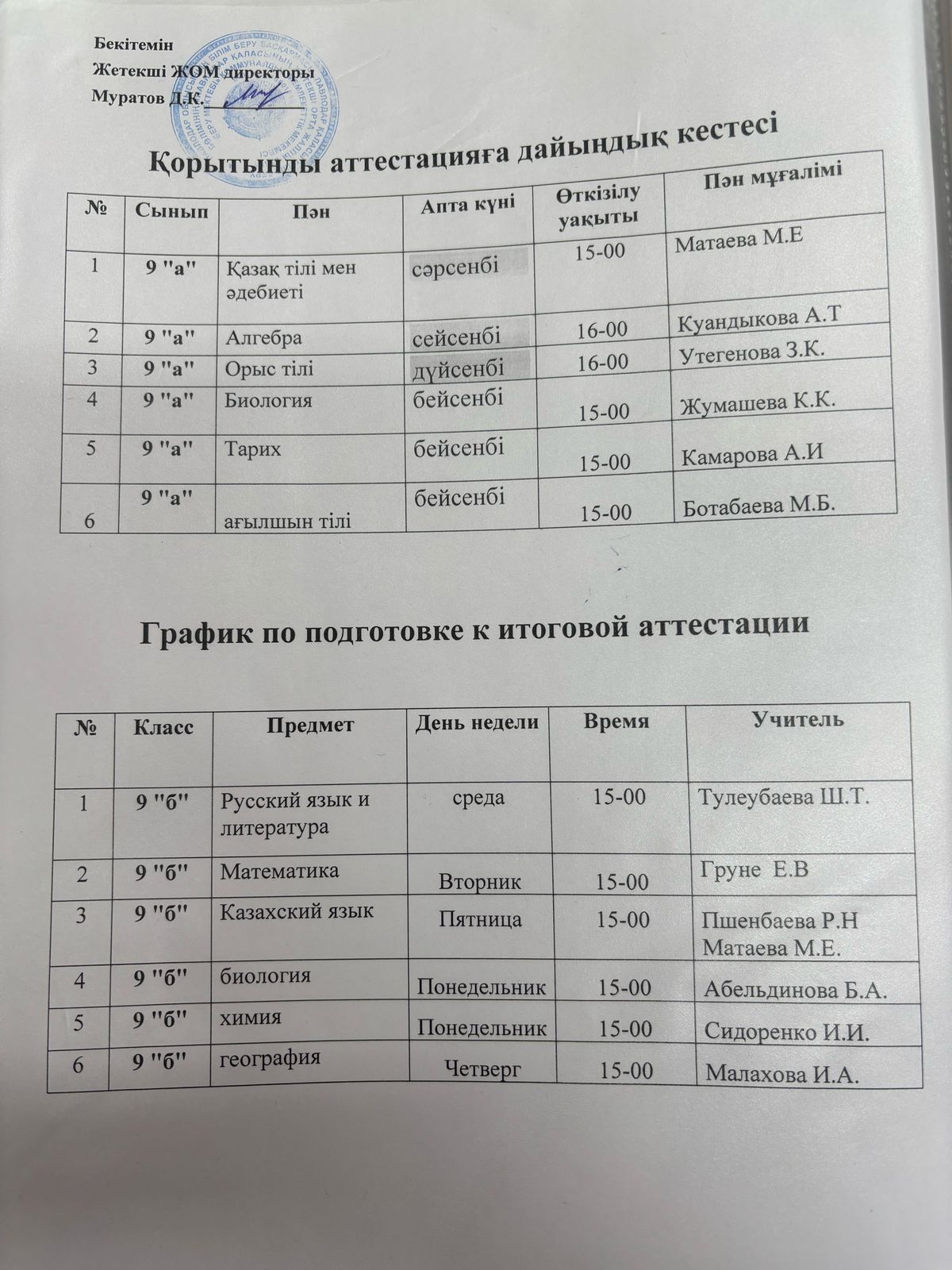 План мероприятий по подготовке и организованному завершению 2024-2025 учебного года в Жетекшинской СОШ | Скачать Смотреть |