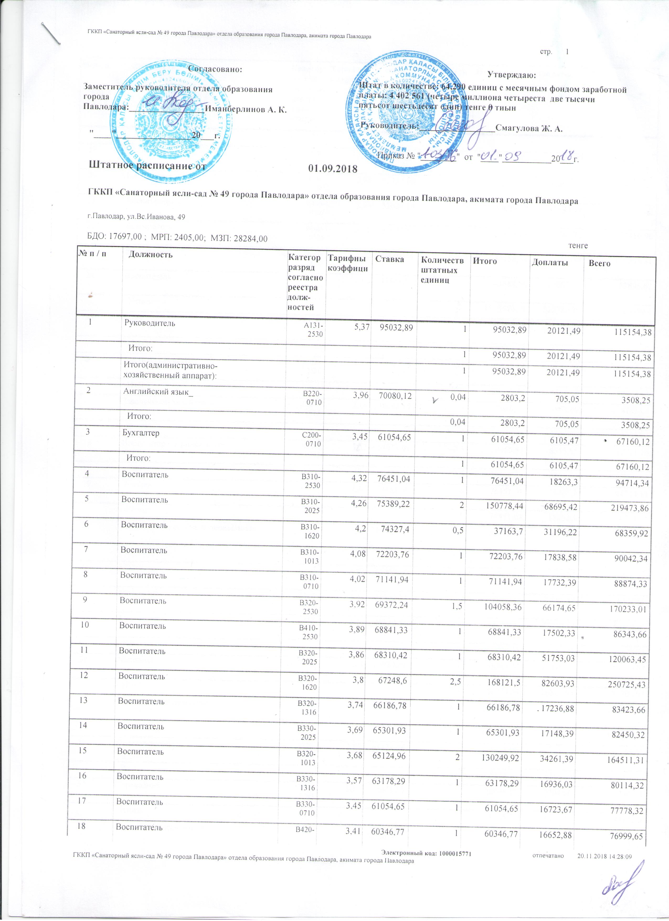 Штатное расписание на 01.09.2019года | Скачать Смотреть |