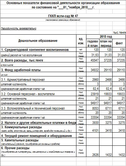 Основные показатели финансовой деятельности организации образования | Скачать |