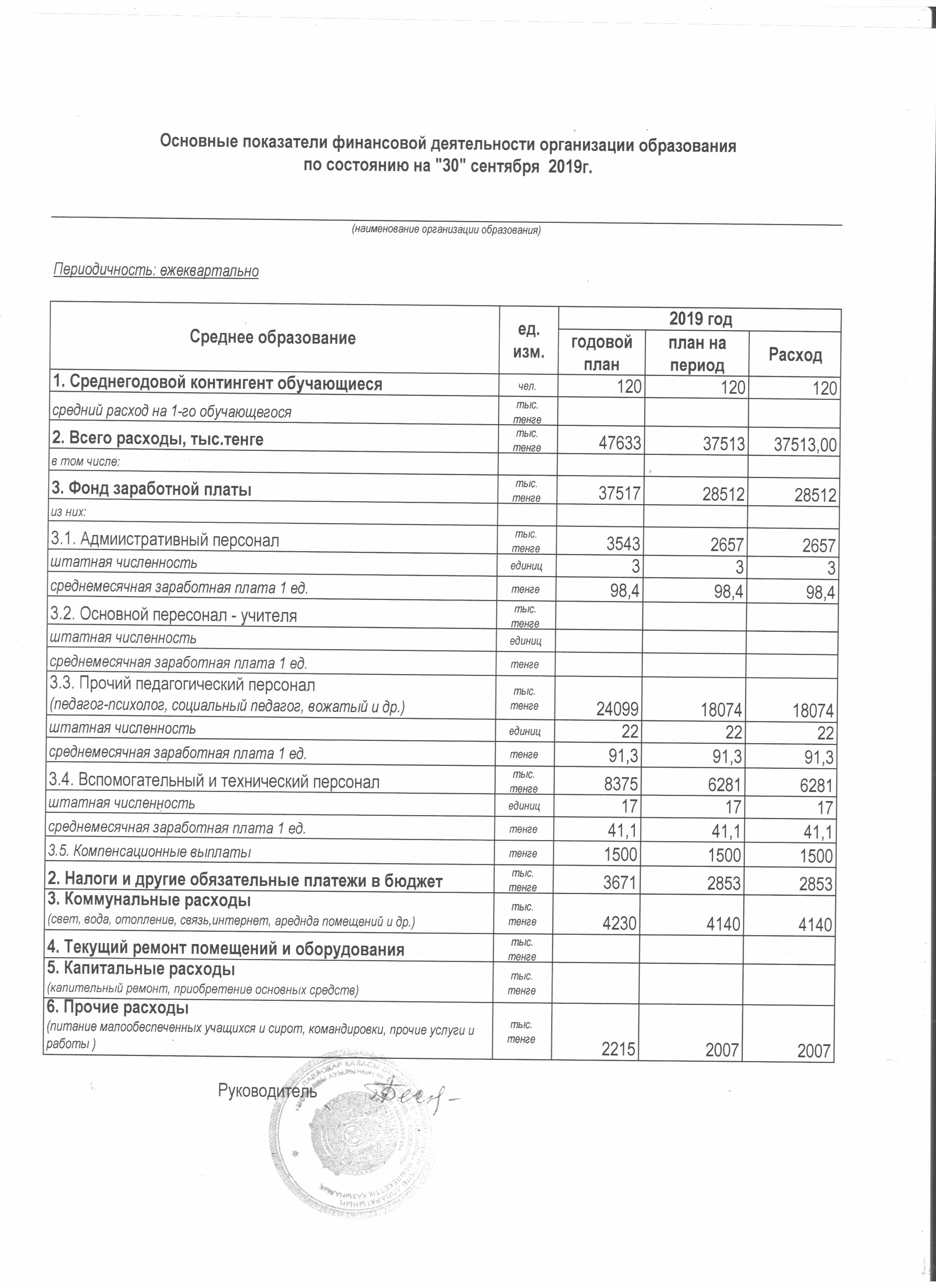 Основные показатели финансовой деятельности организации образования на 30.09.2019 | Скачать |