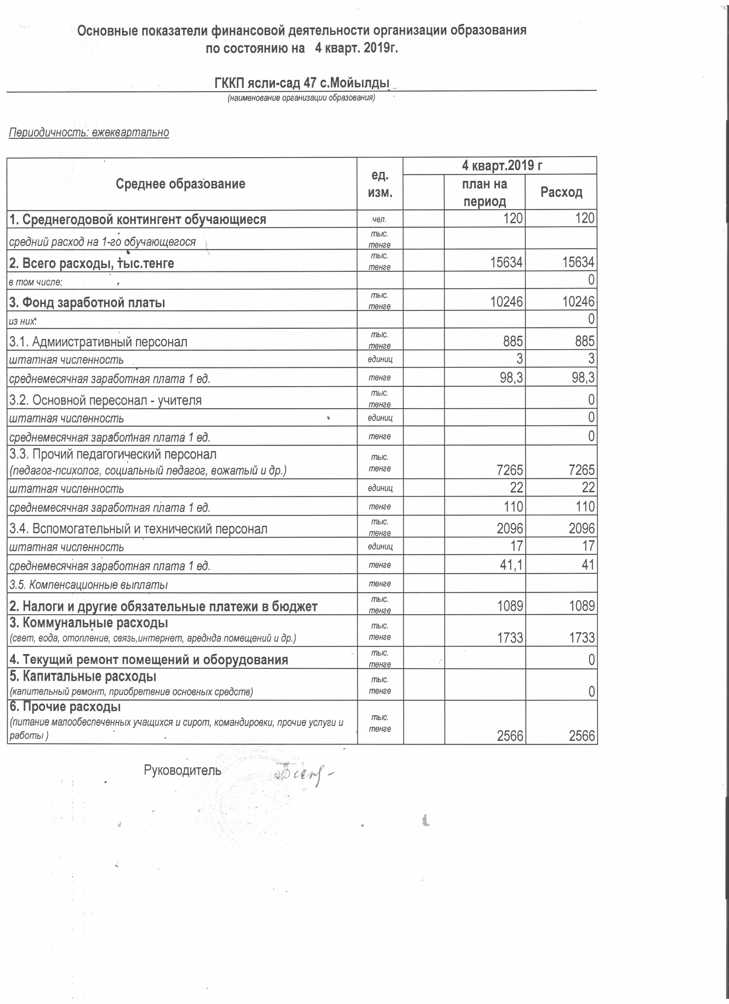 Основные показатели финансовой деятельности организации образования 4 квартал 2019 г. | Скачать |