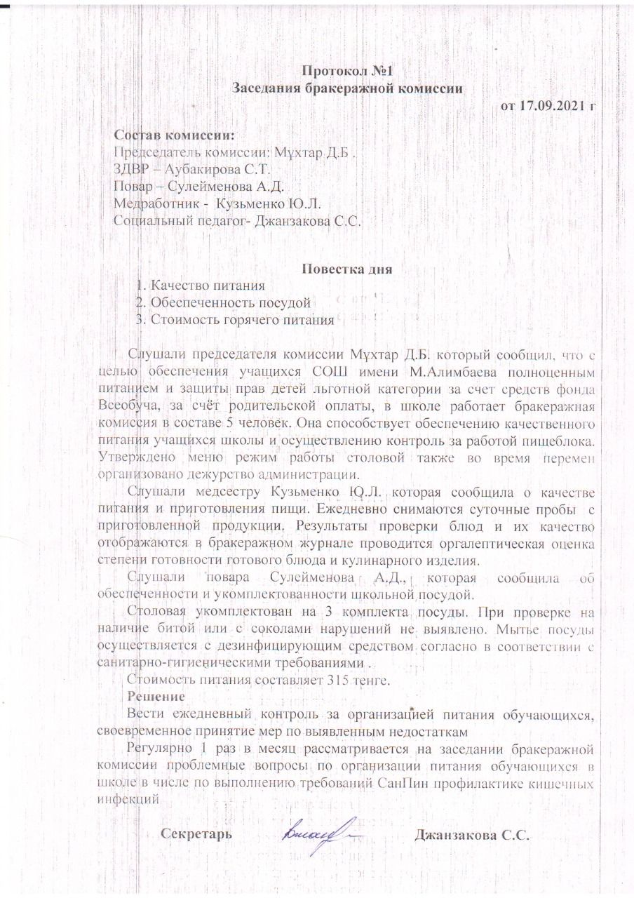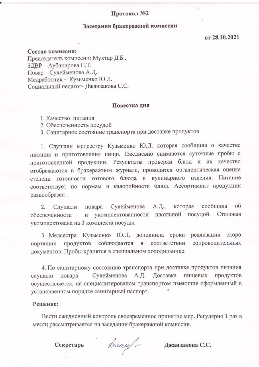 Бракераж комиссиясының қараша айына арналған актісі