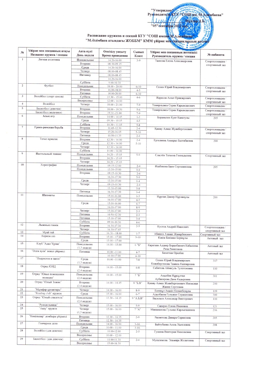 Расписание кружков и секции на II полугодие 2022-2023 учебный год