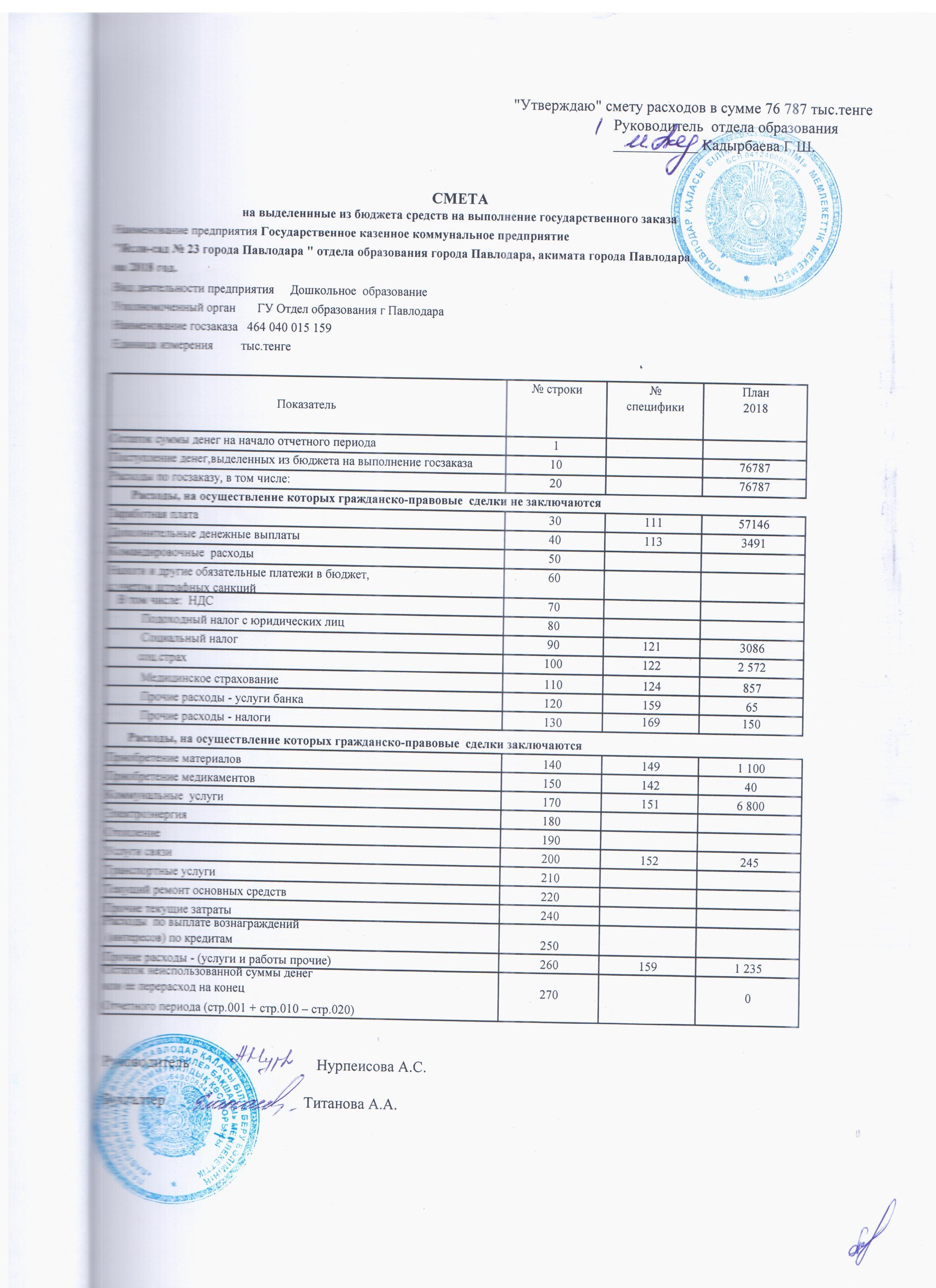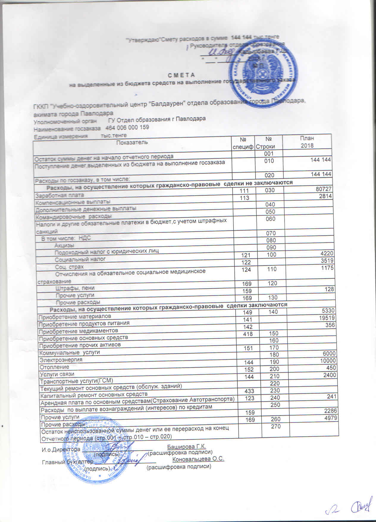 2018 жылғы 1 желтоқсанына қаржыландыру жоспары | Скачать Смотреть |