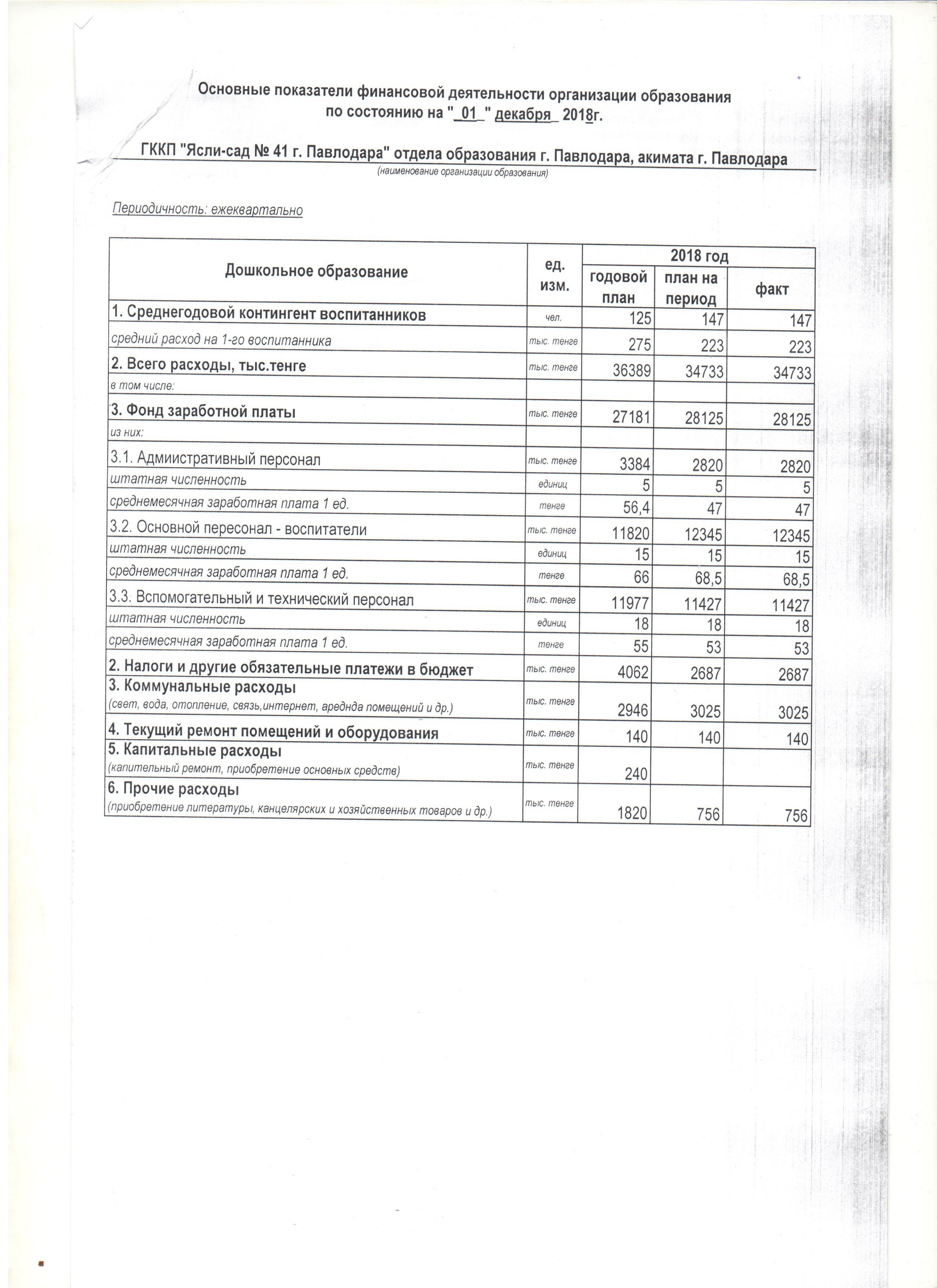 Основные показатели финансовой деятельности организации образования на 1.12.2018 | Скачать Смотреть |