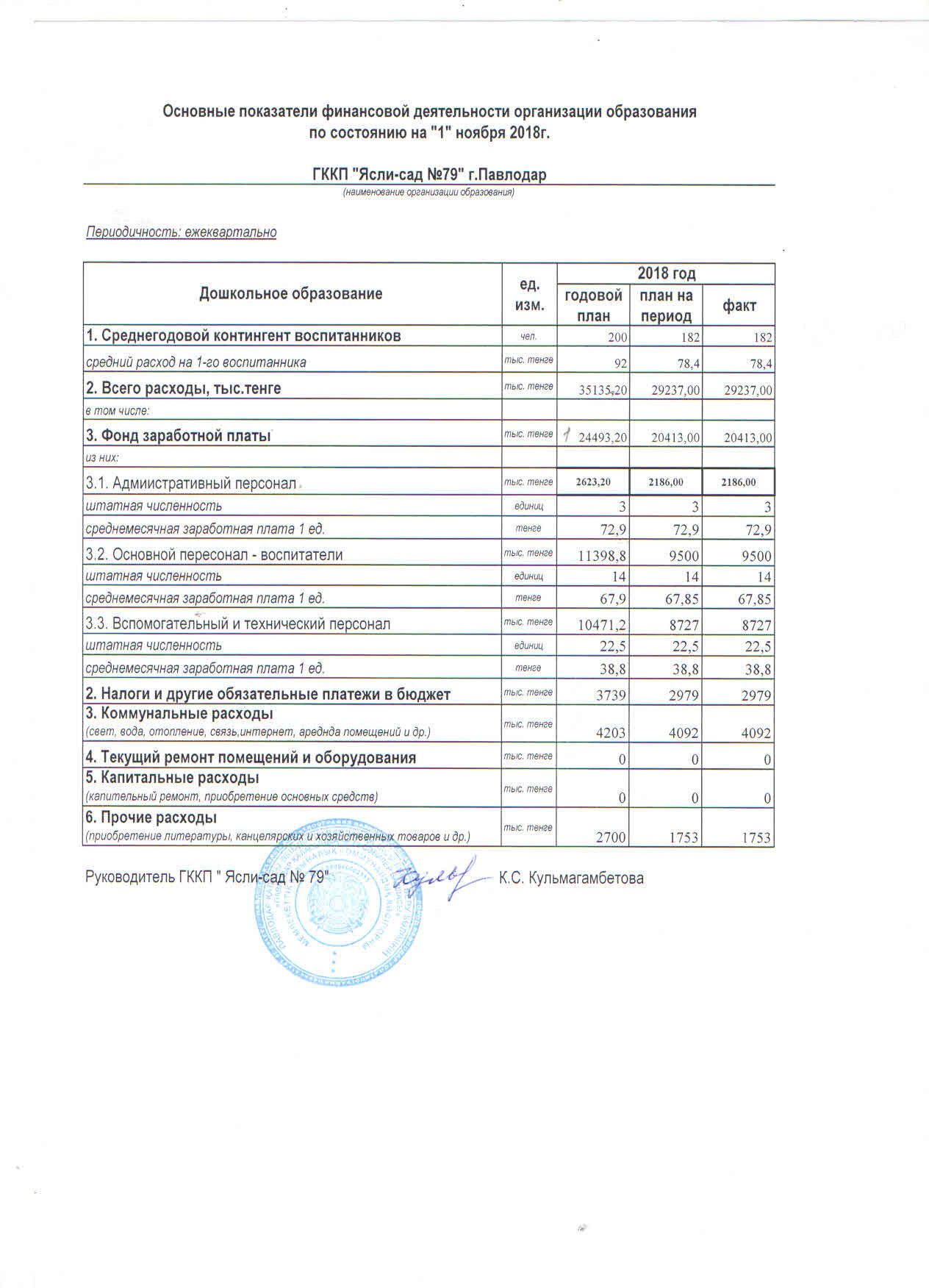Основные показатели финансовой деятельности организации образования по состоянию на "30" ноября 2018 г. | Скачать Смотреть |