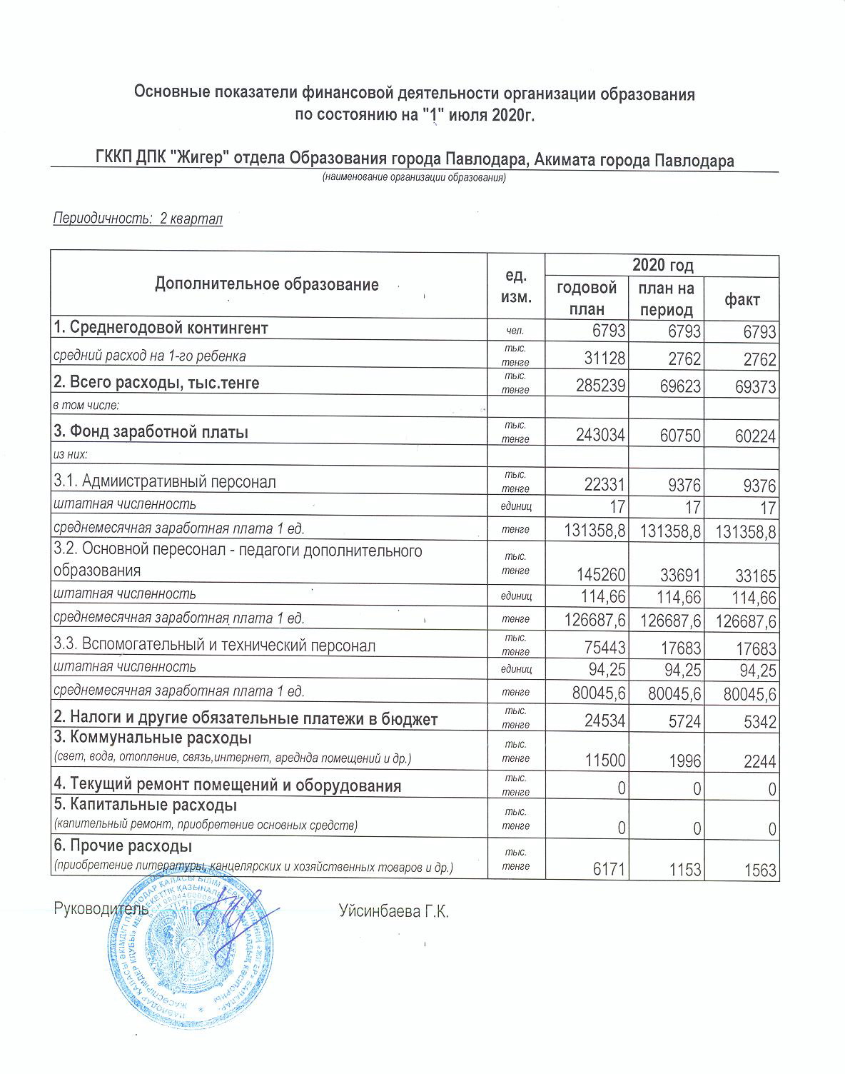 Основные показатели финансовой деятельности ГУ «Школа-лицей 20 города Павлодара» по состоянию на 1 августа 2020 г. | көшіріп алу қарау |