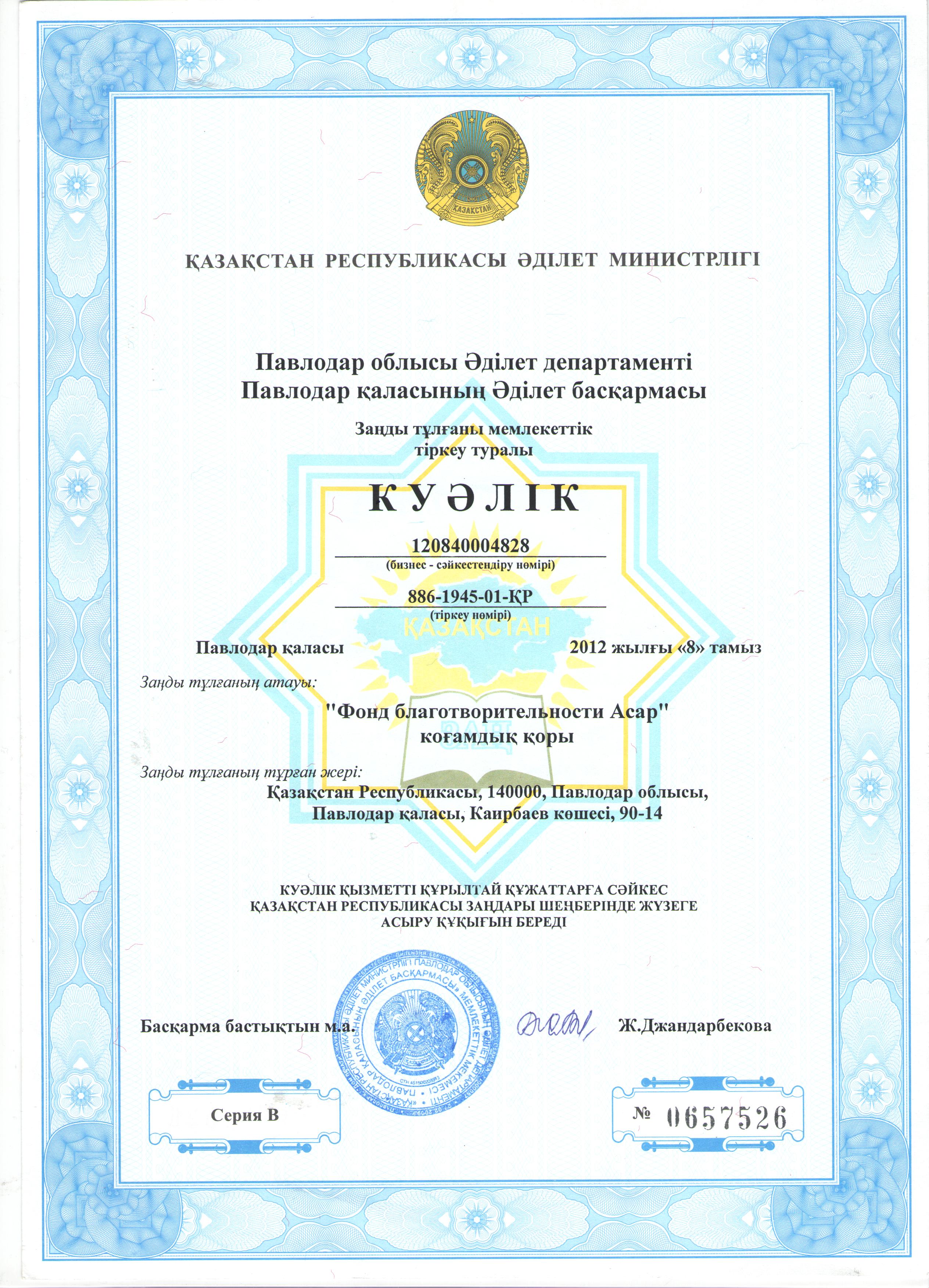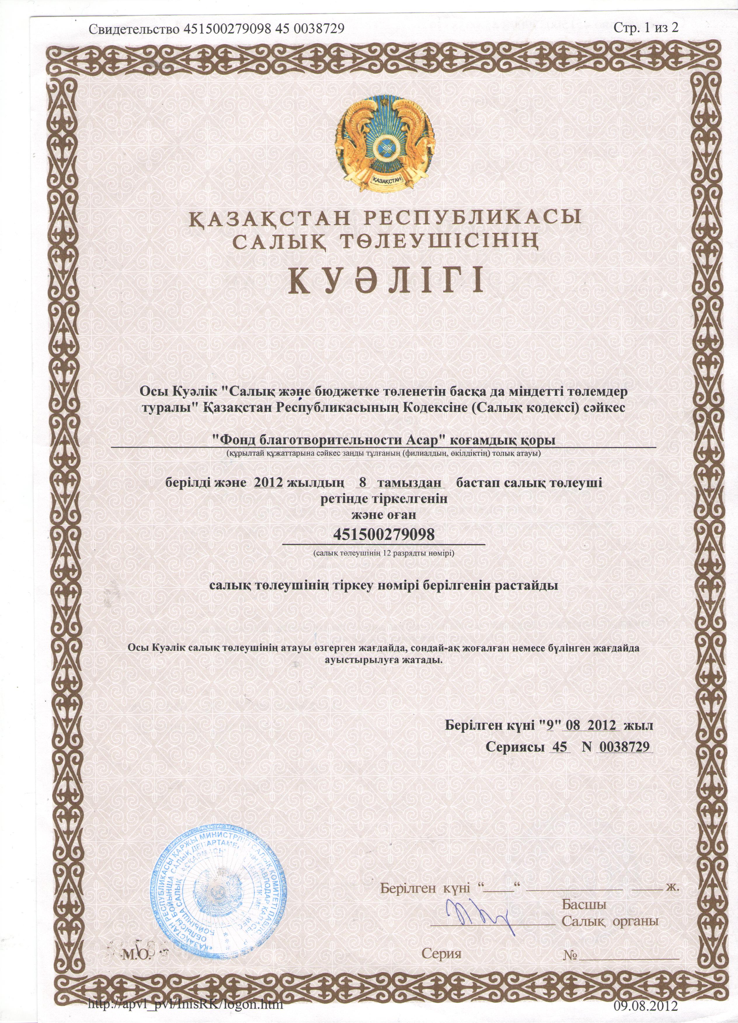 Мемлекеттік тіркеу туралы куәлік | көшіріп алу |