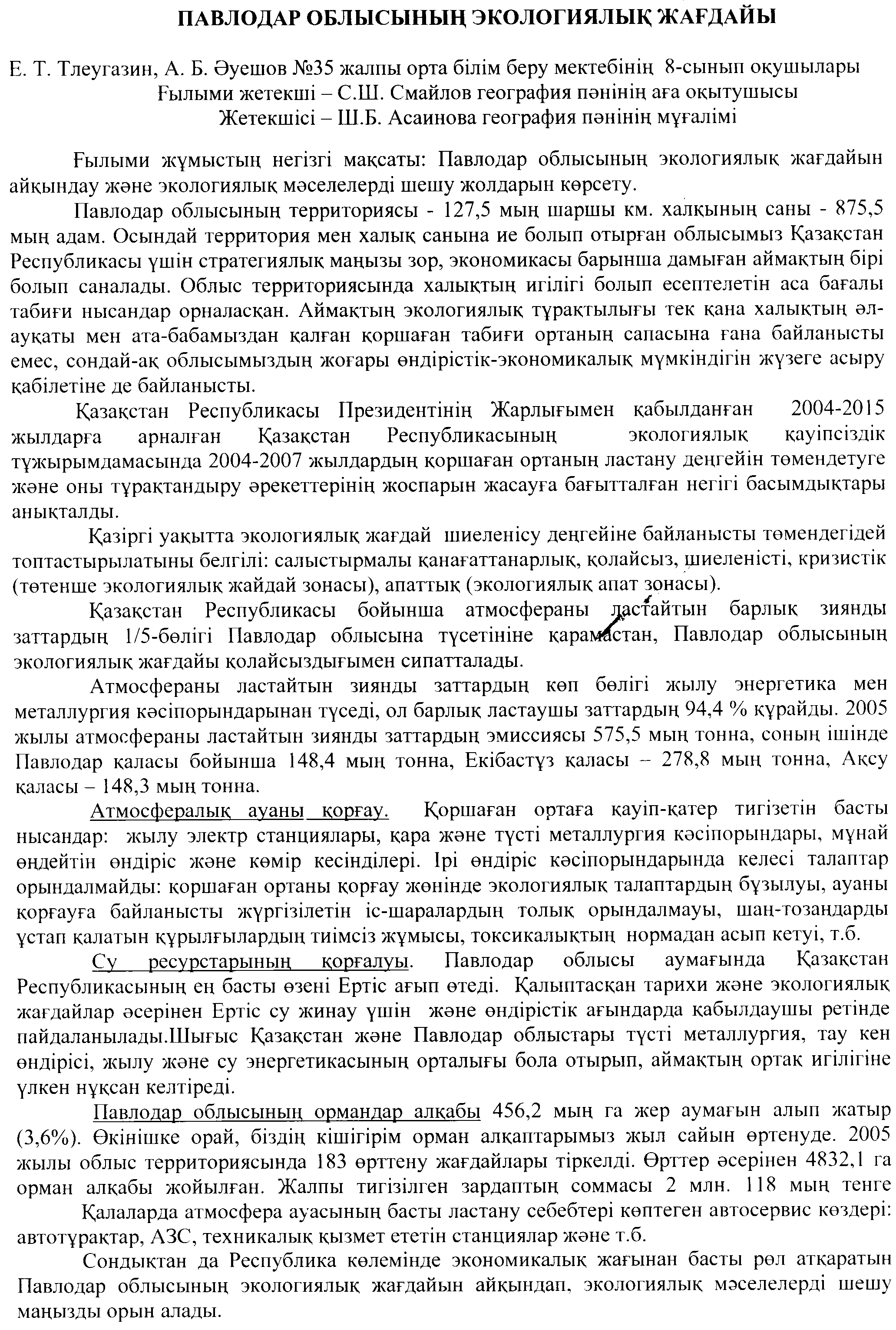 Павлодар облысыныњ экологиялыќ жаѓдайы | көшіріп алу |