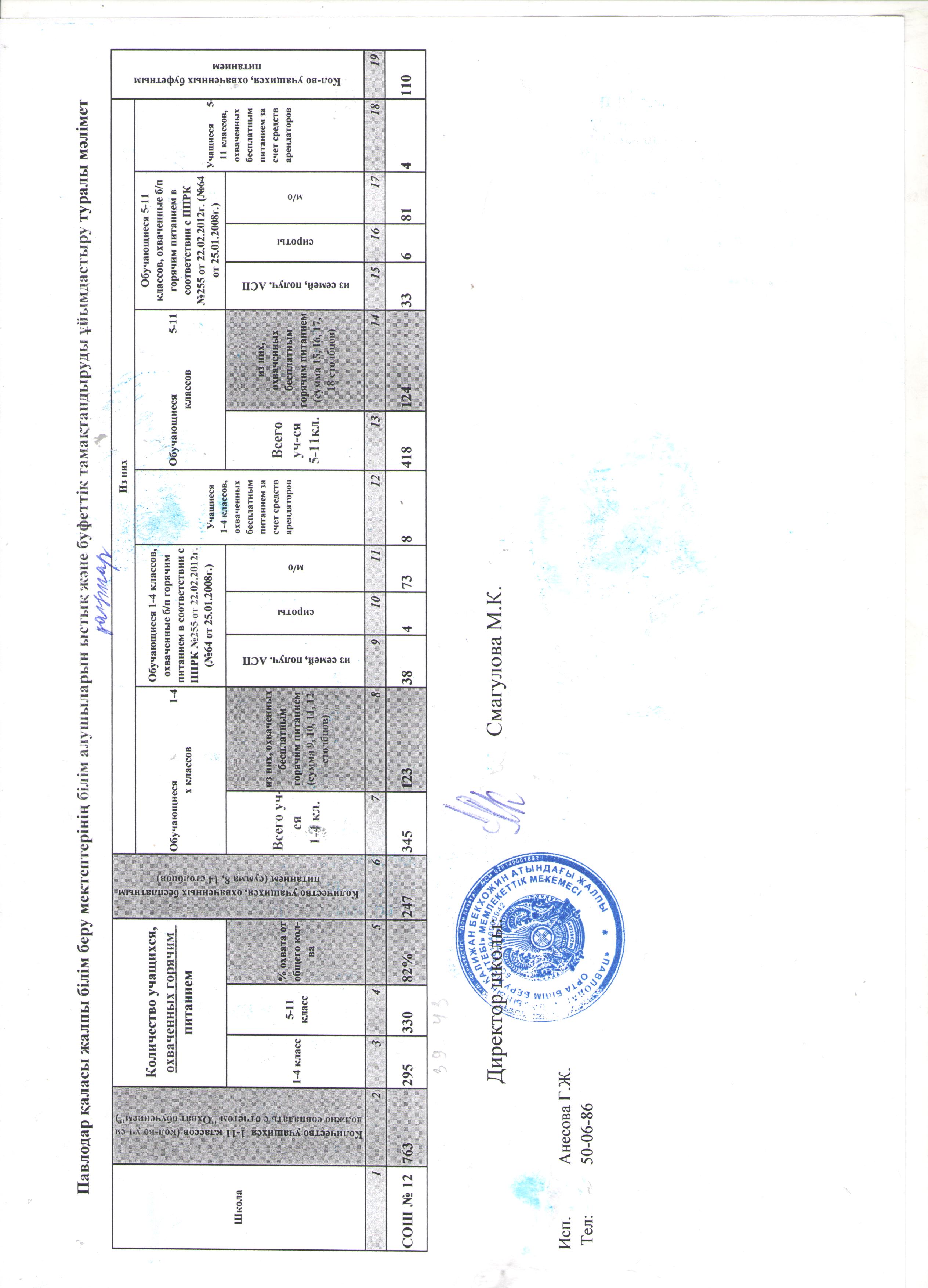 Ыстық және буфеттік тамақтандыруды ұйымдастыру туралы мәлімет(қаңтар)