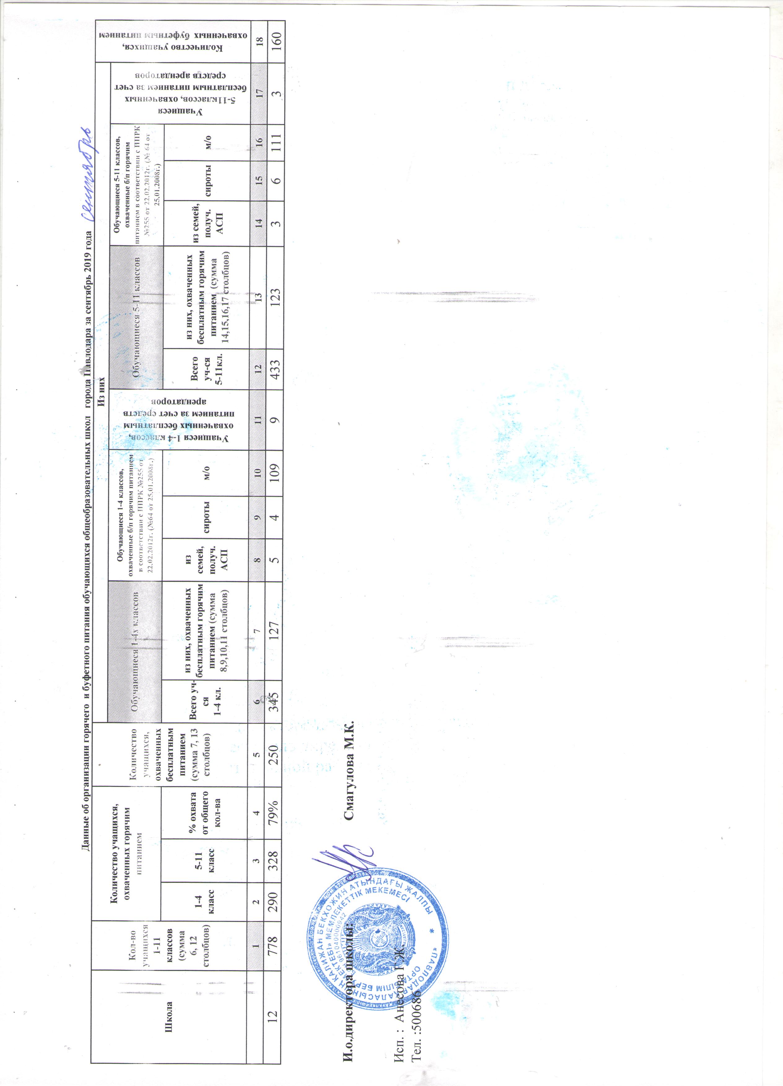 Ыстық және буфеттік тамақтандыруды ұйымдастыру туралы мәлімет(қыркүйек)