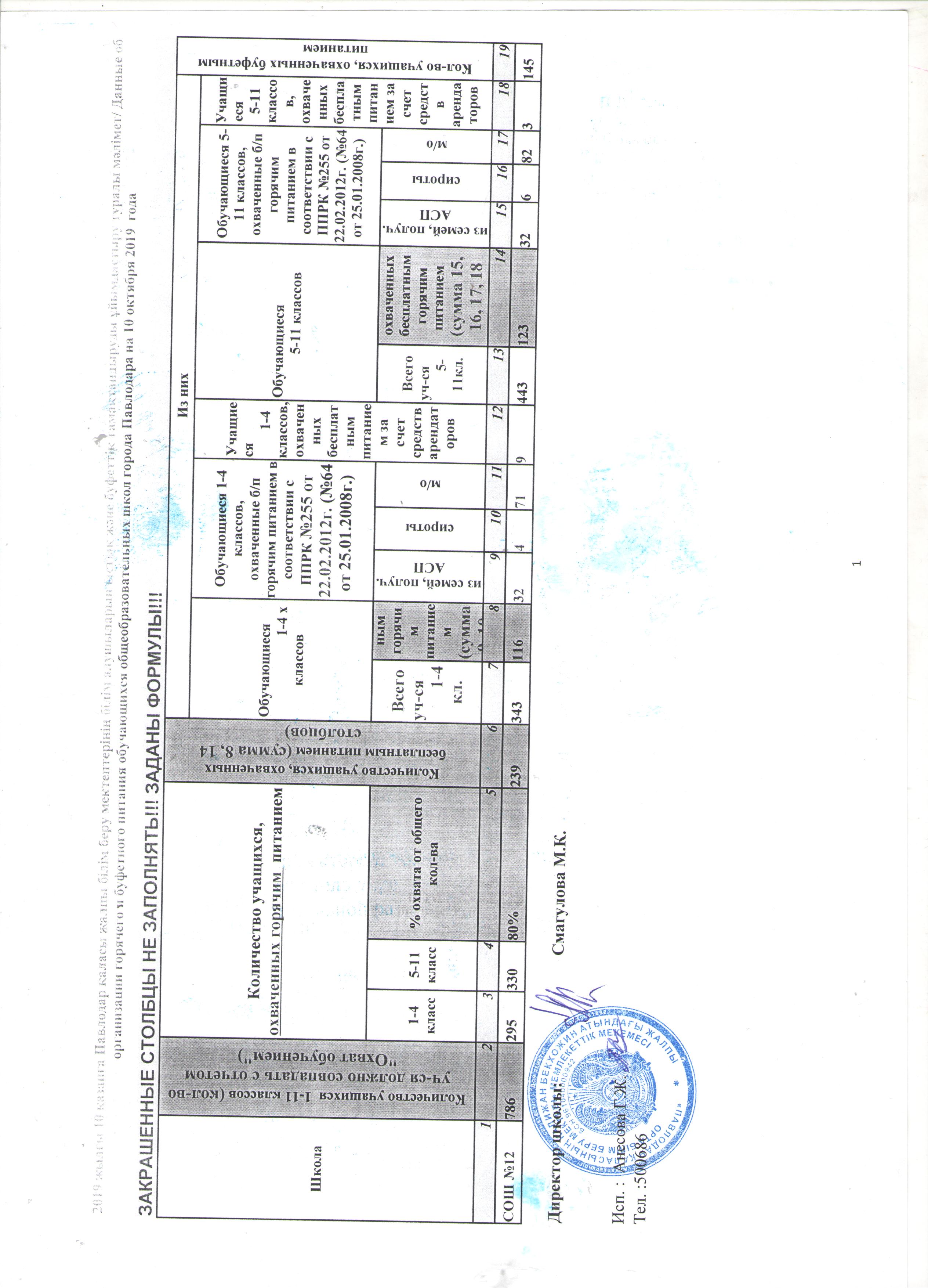 Ыстық және буфеттік тамақтандыруды ұйымдастыру туралы мәлімет(қазан)