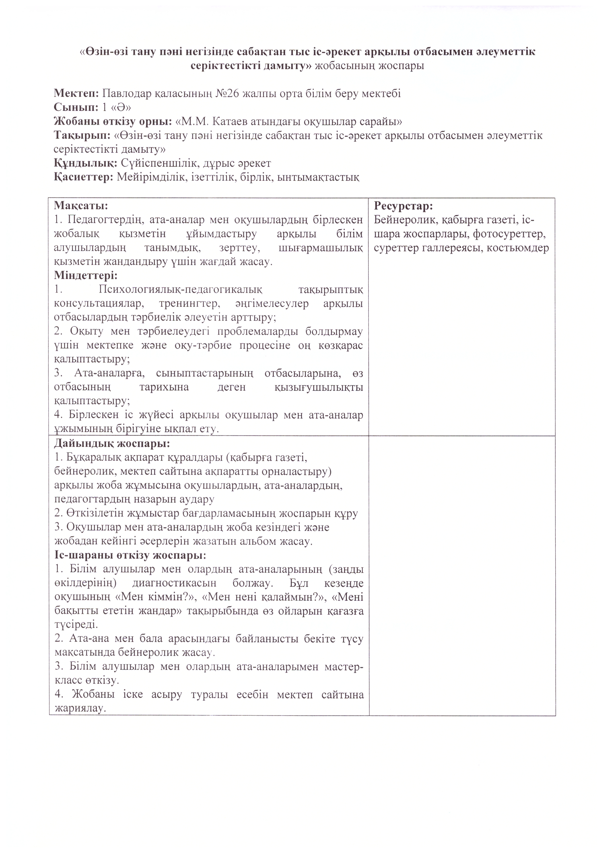 Социальный проект "Развитие социального партнерства с семьей через внеурочную деятельность на основе предмета самопознания" | Скачать |