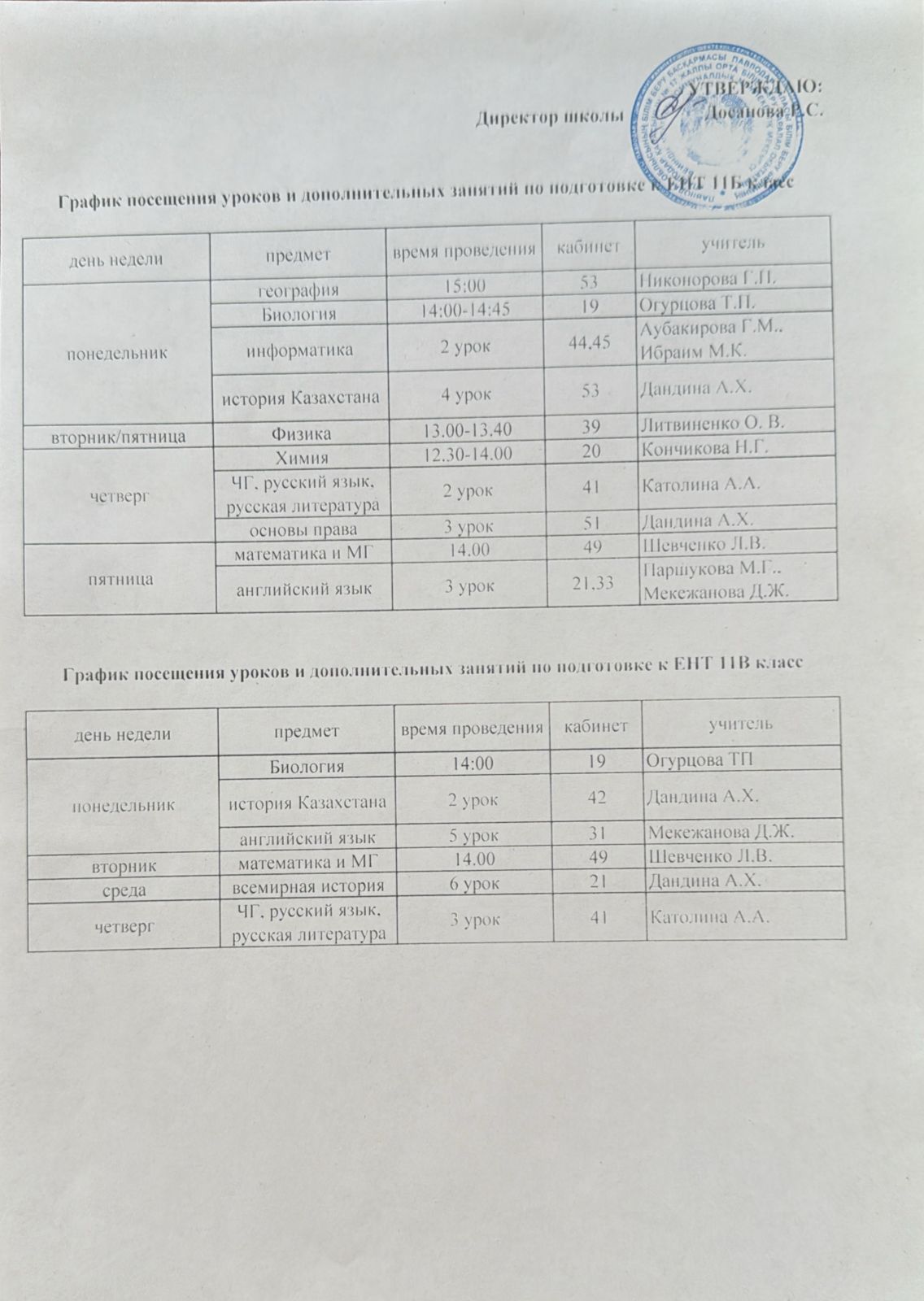 «Павлодар каласының Кенжекөл жалпы орта білім беру мектебі» ММ 2025-2026 оқу жылында 9-шы сыныптарда мемлекеттік емтихандарға дайындау бойынша Кеніс беру кестесі | Скачать Смотреть |