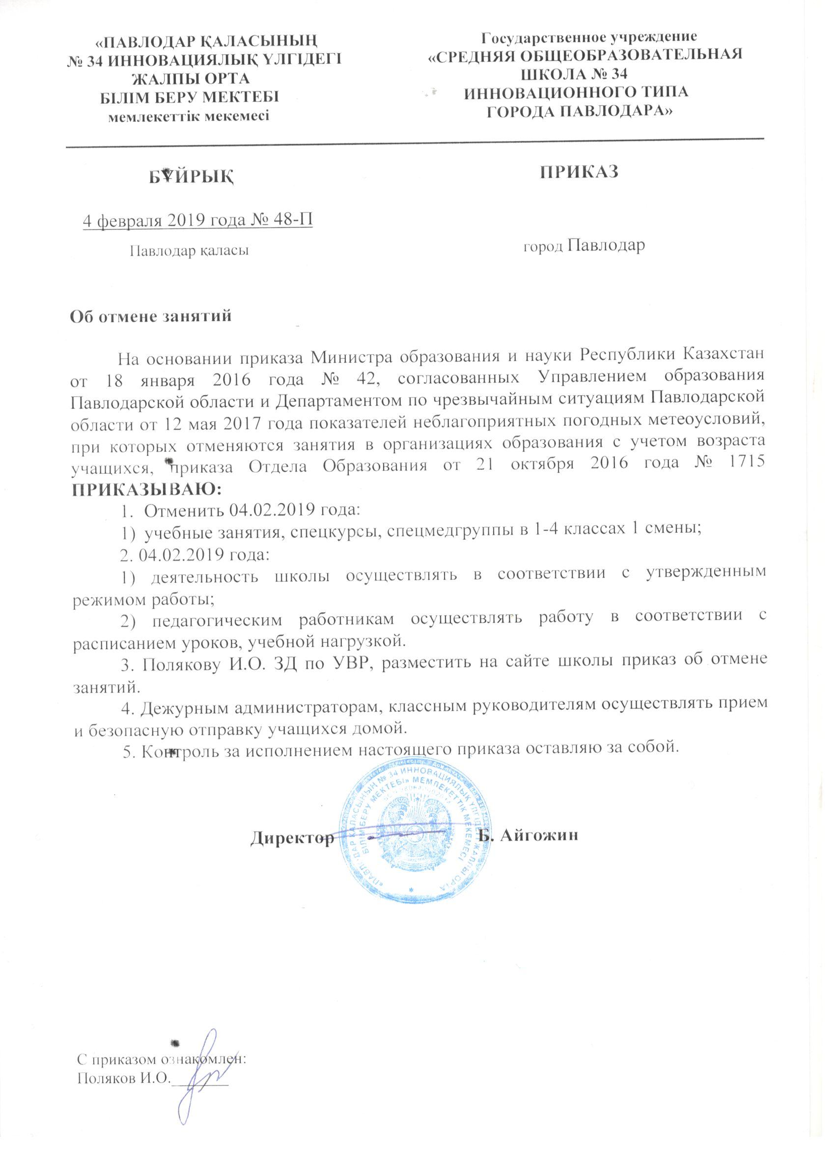 Отмена занятий 1-й смены с 1 по 4 класс 2.02.2019 | Скачать |