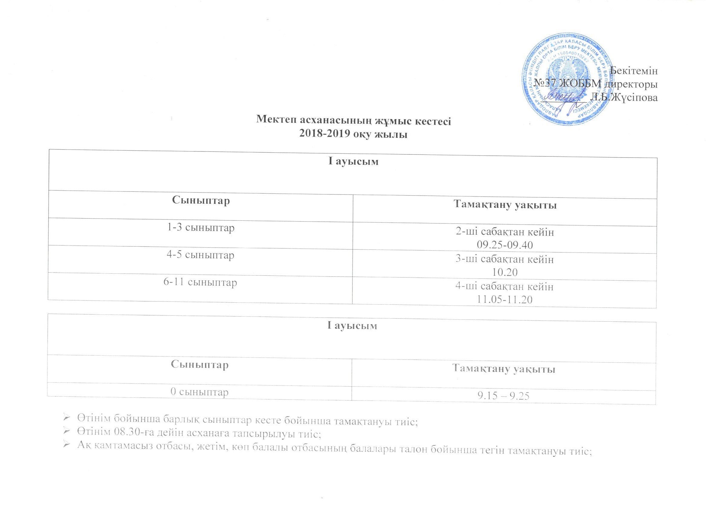 График работы в столовой