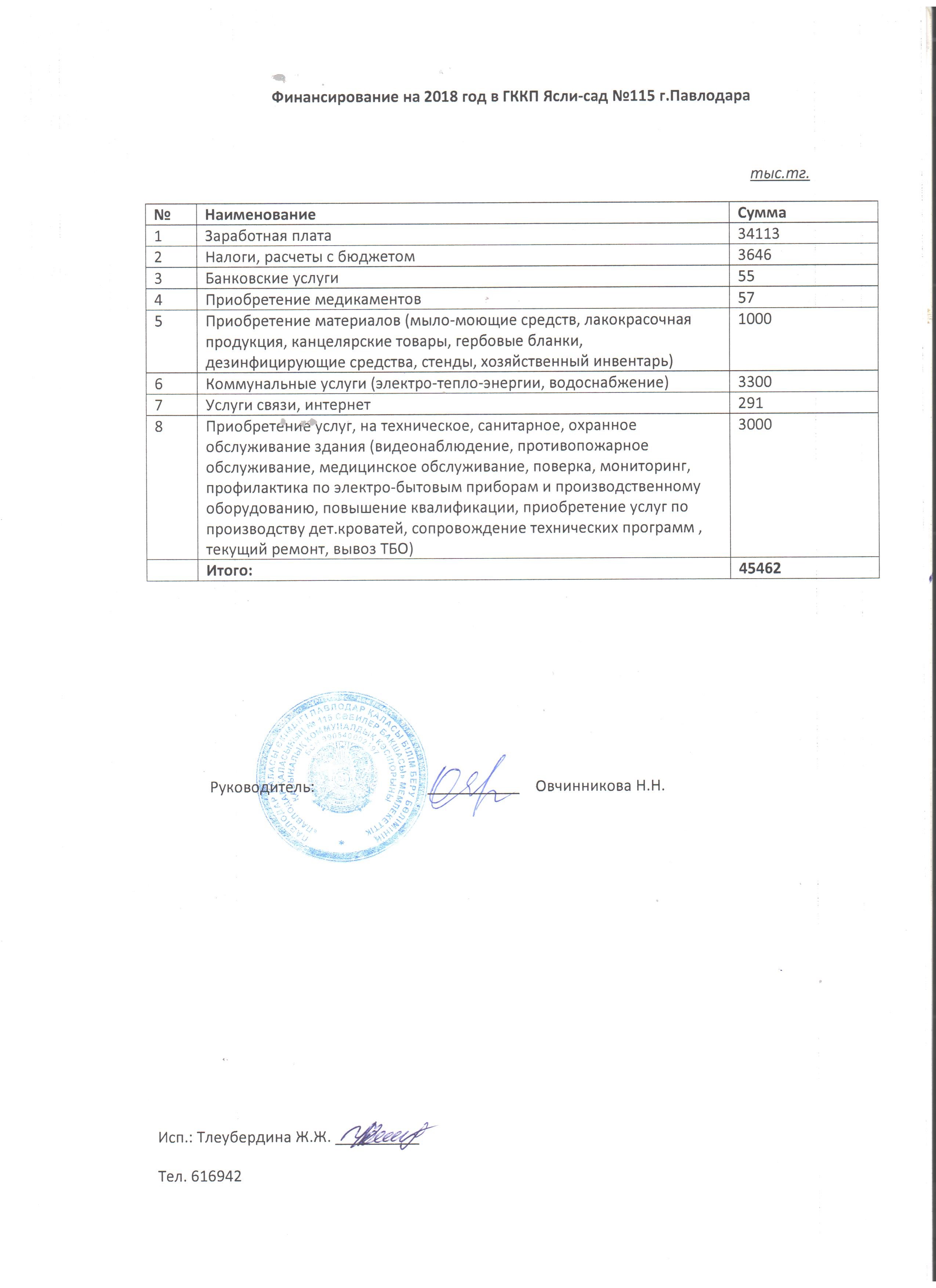 Финансирование ГУ "СОШ № 34 инновационного типа города Павлодара" 2018 год