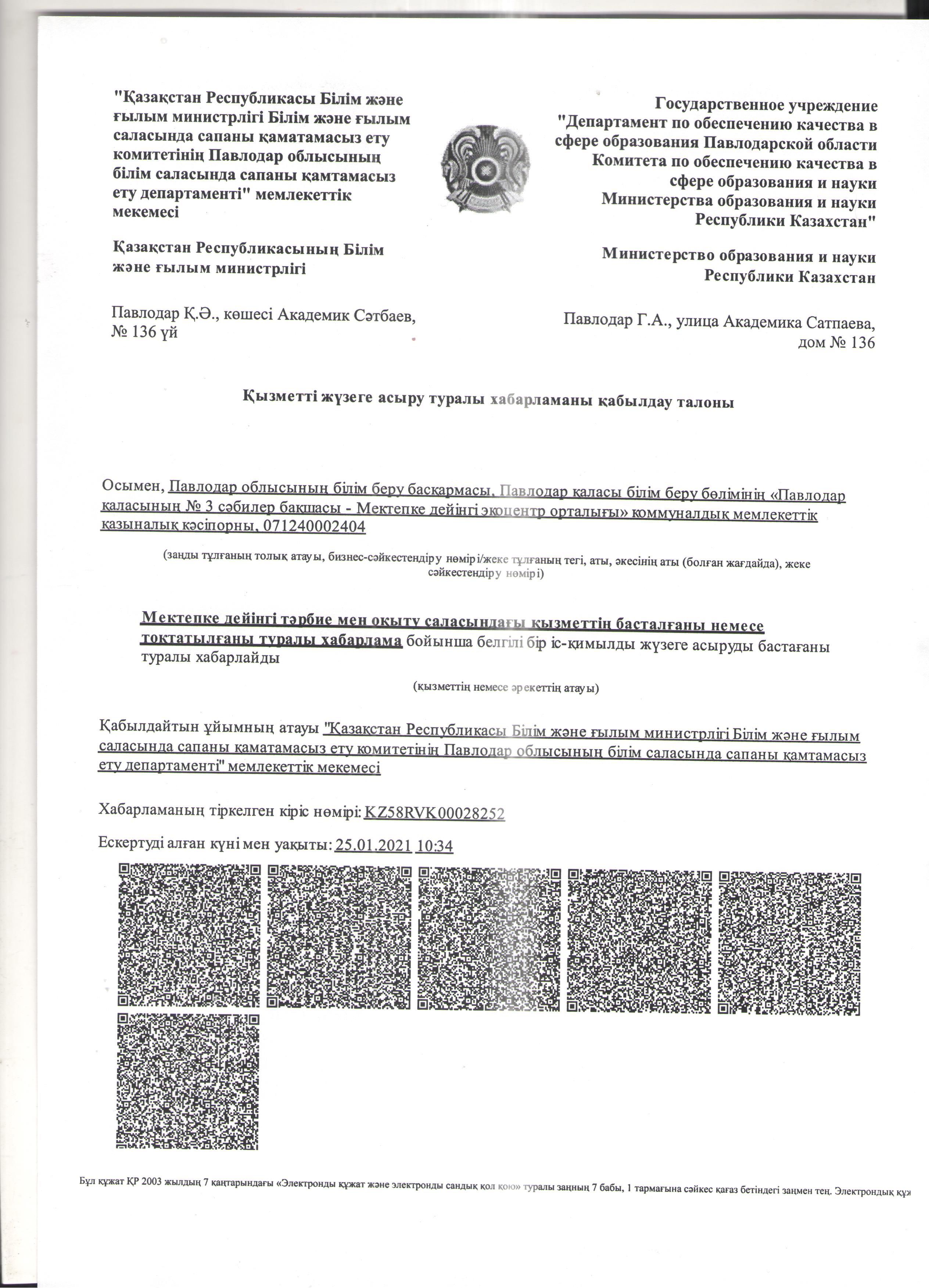 Қызметті жүзеге асыру туралы хабарламаны қабылдау талоны | Скачать |