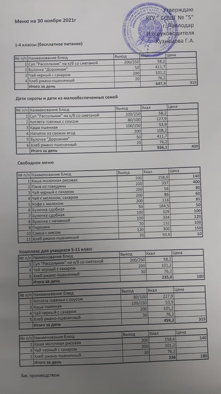 Акт проверки качества питания школьной столовой (ноябрь,2021г) | Скачать |