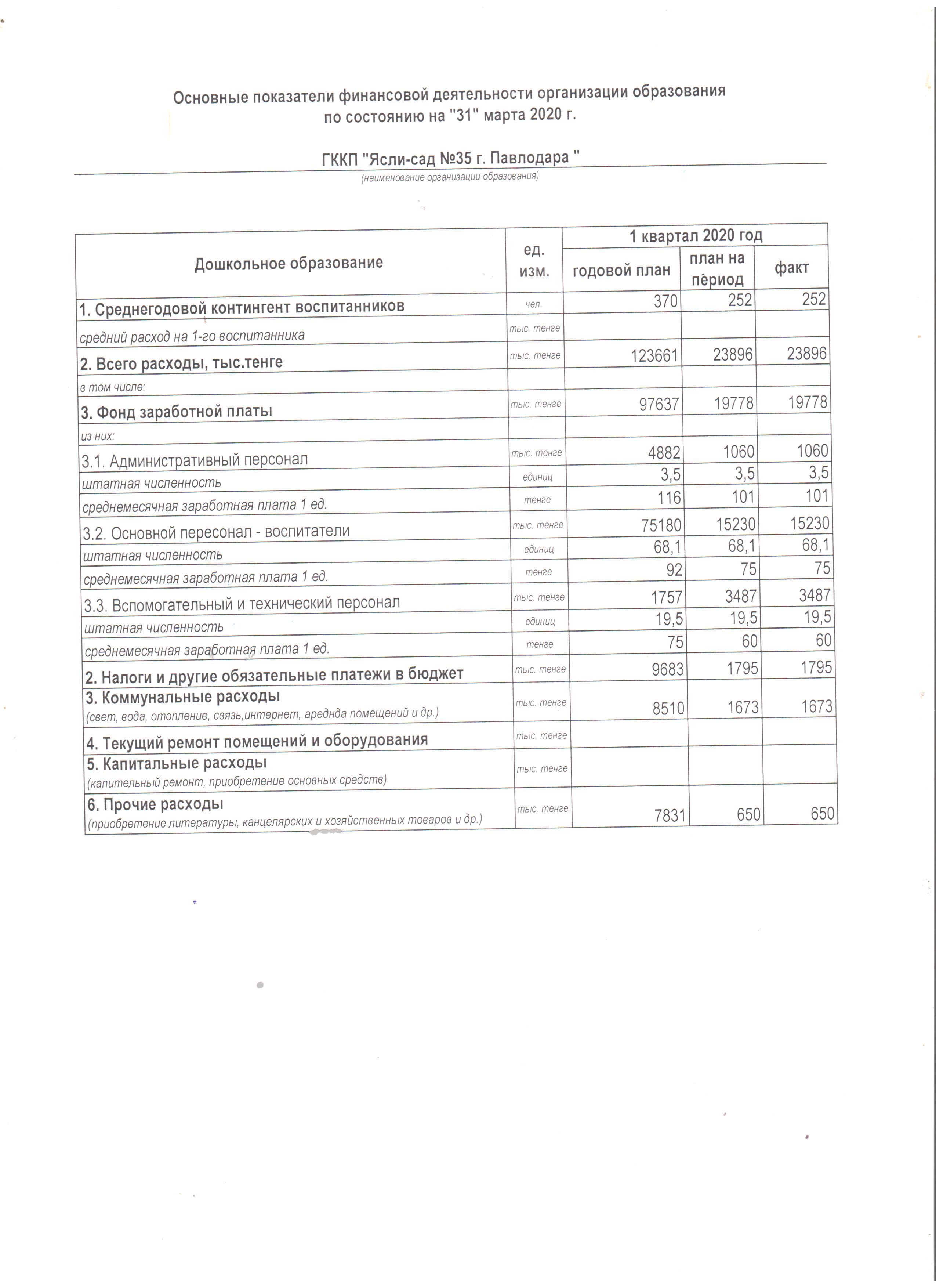 Основные показатели финансовой деятельности организации образования по состоянию на 01.04.2020 | Скачать Смотреть |