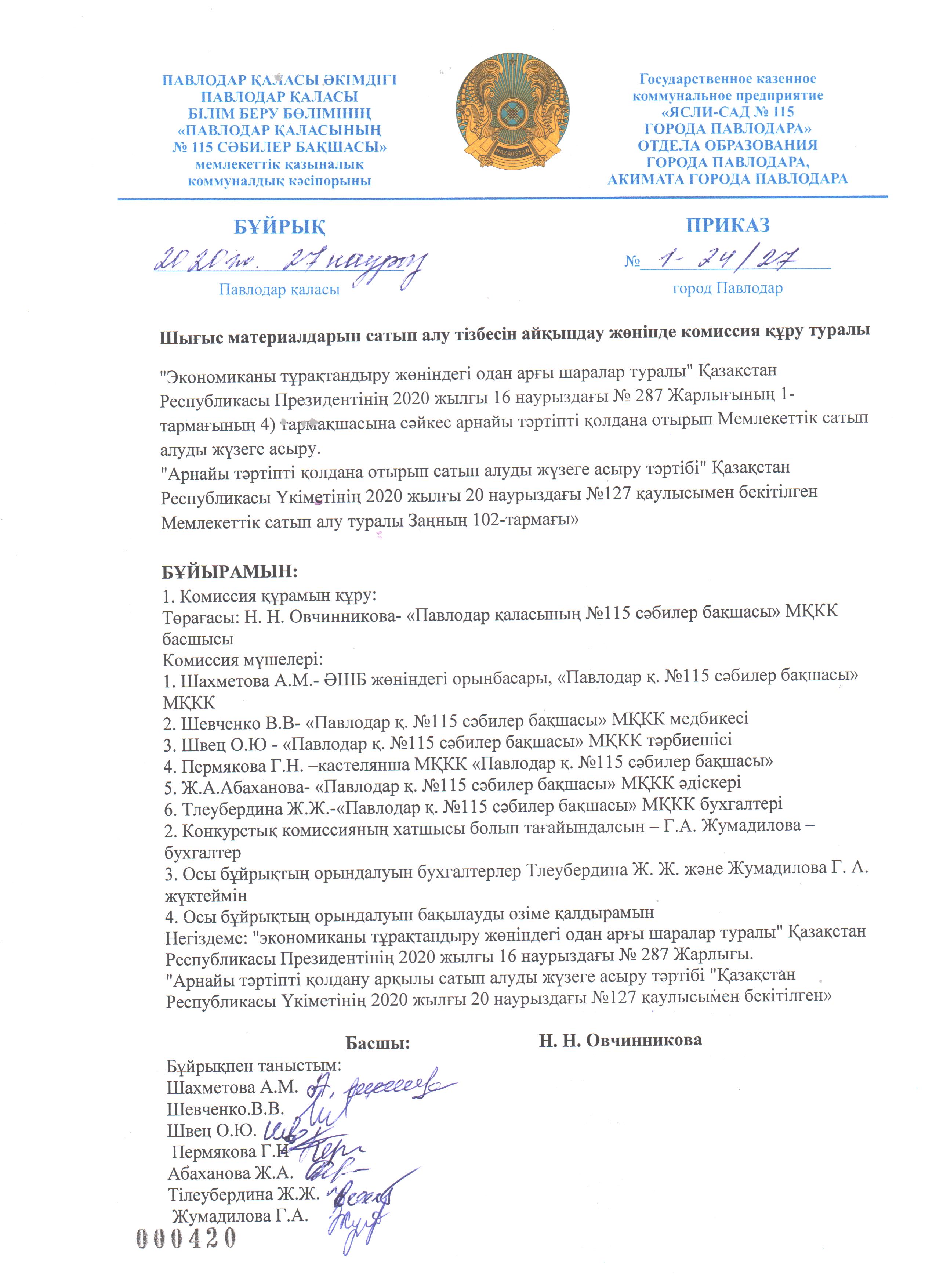 Протокол об осуществлении закупа расходных материалов по порталу государственных закупок | көшіріп алу қарау |