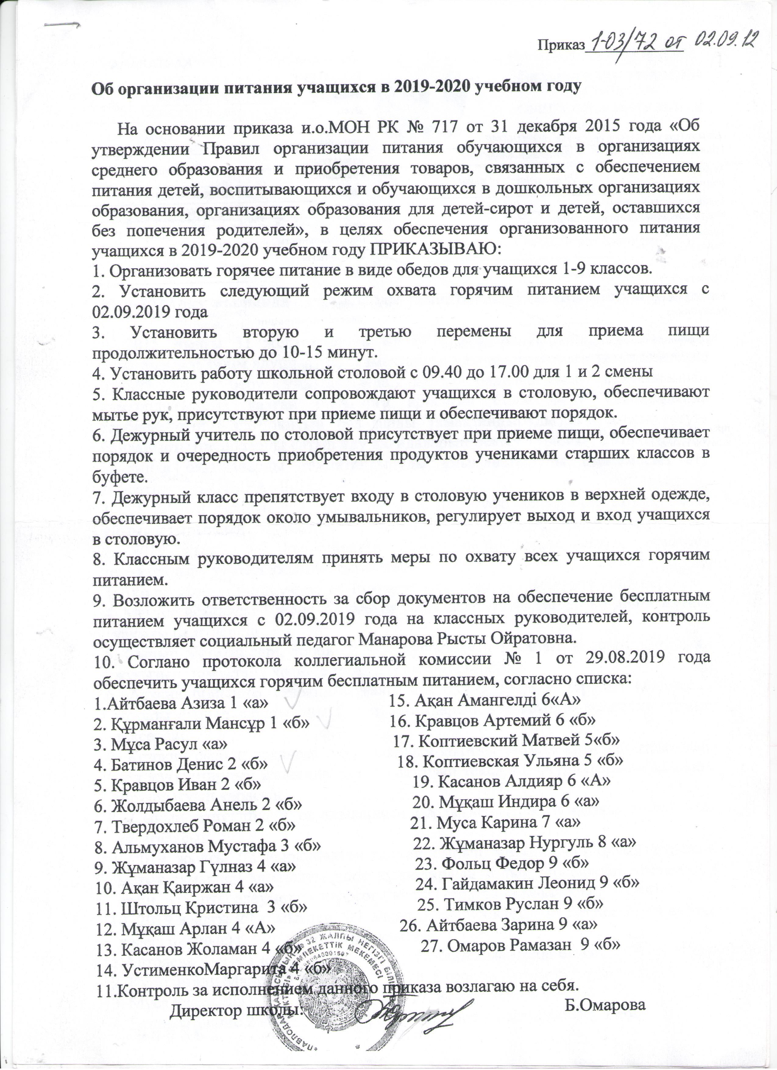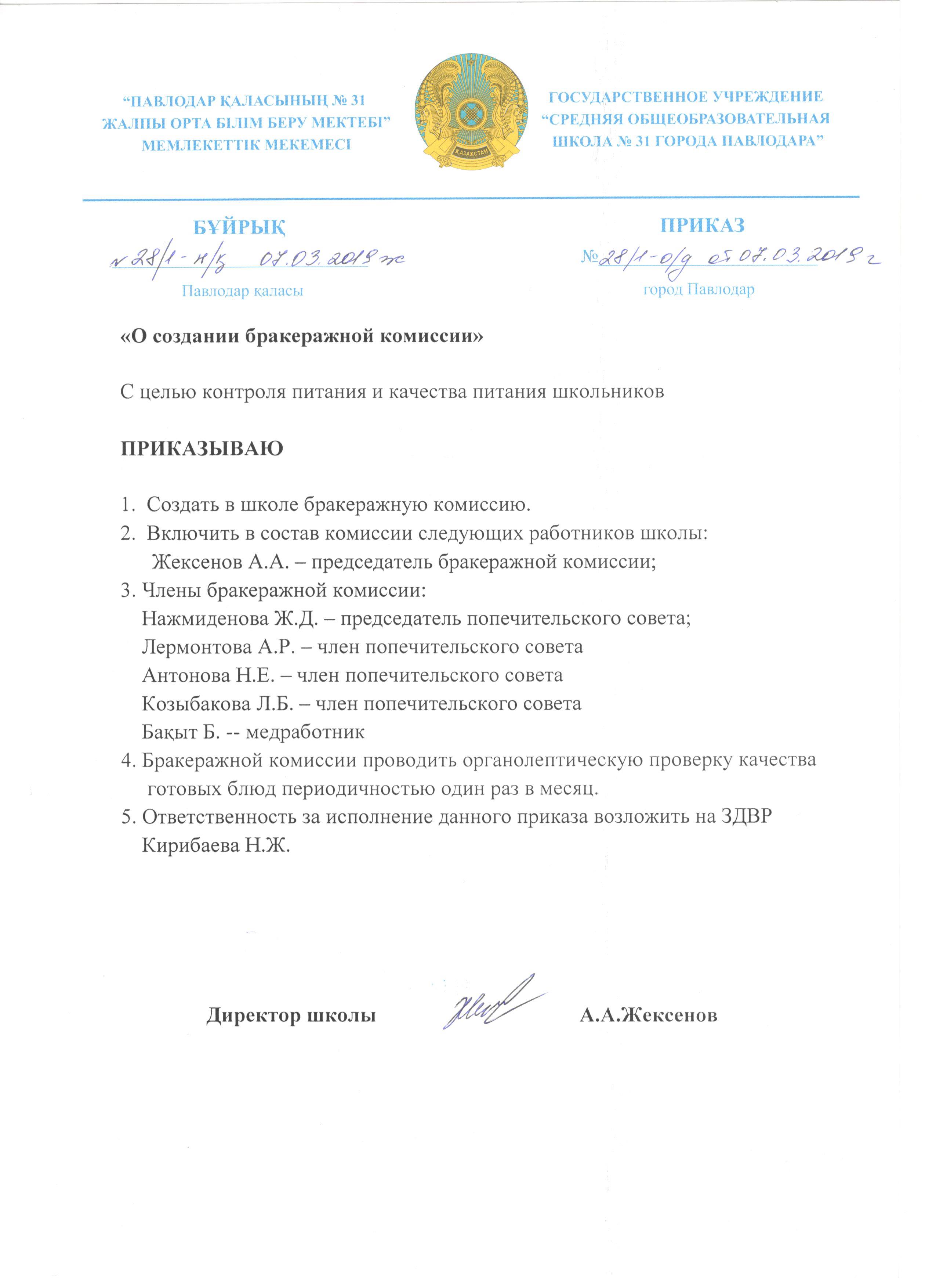 приказ о комиссии для контроля питания | Скачать Смотреть |