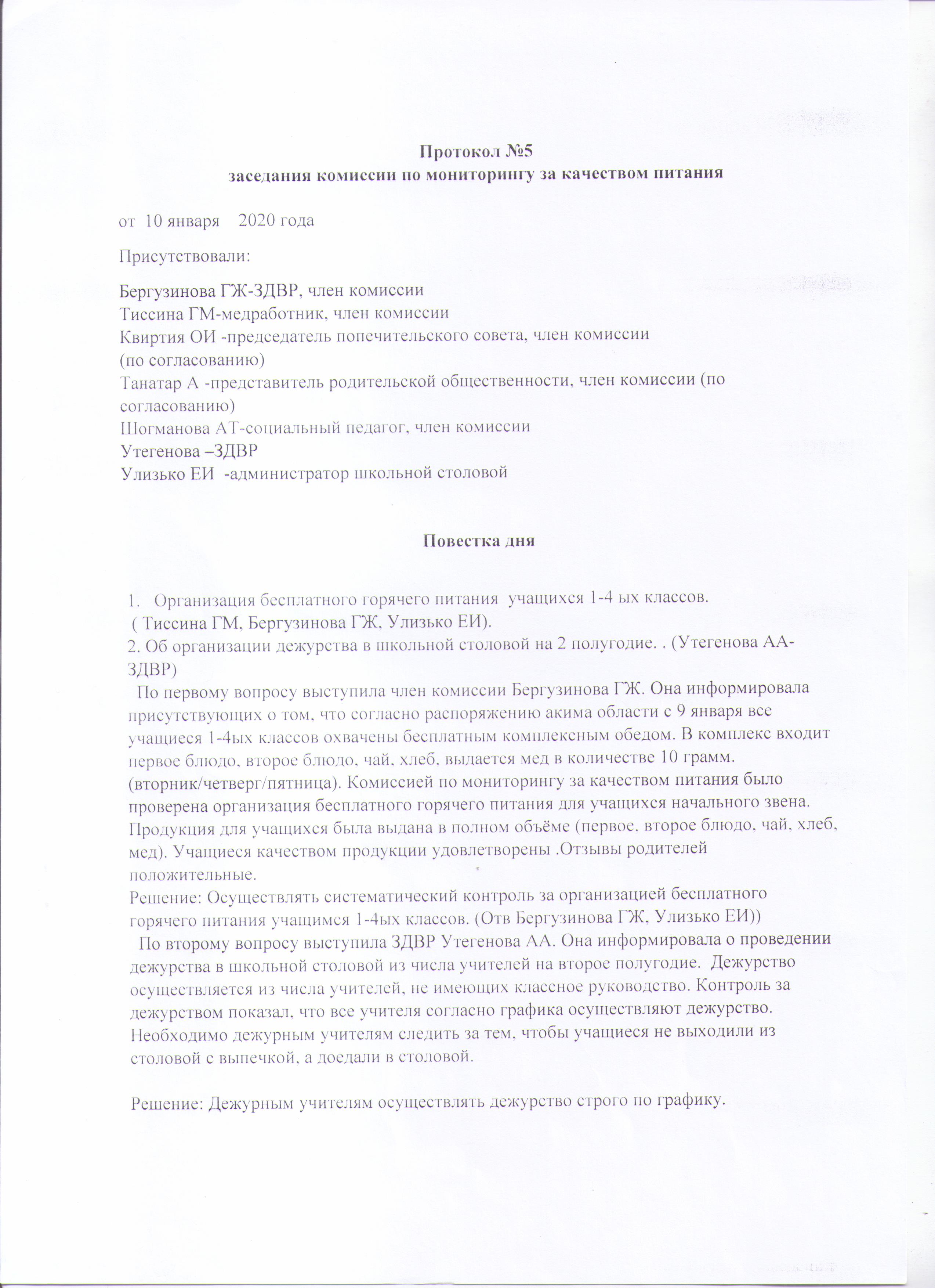 Minutes No. 5 of the meeting of the Commission for monitoring food quality dated January 10, 2020 | Скачать |