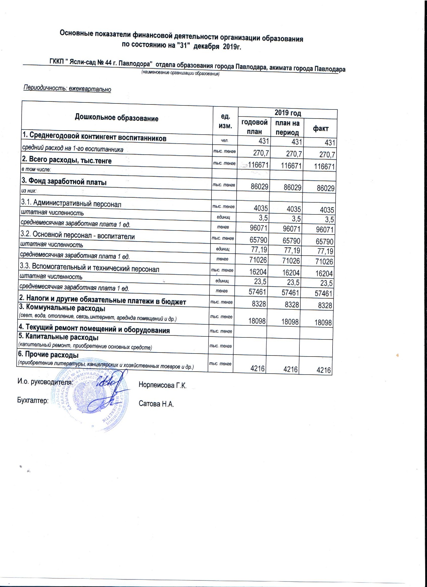 Основные показатели финансовой деятельности организации образования за период 4 квартал 2019г | Скачать |
