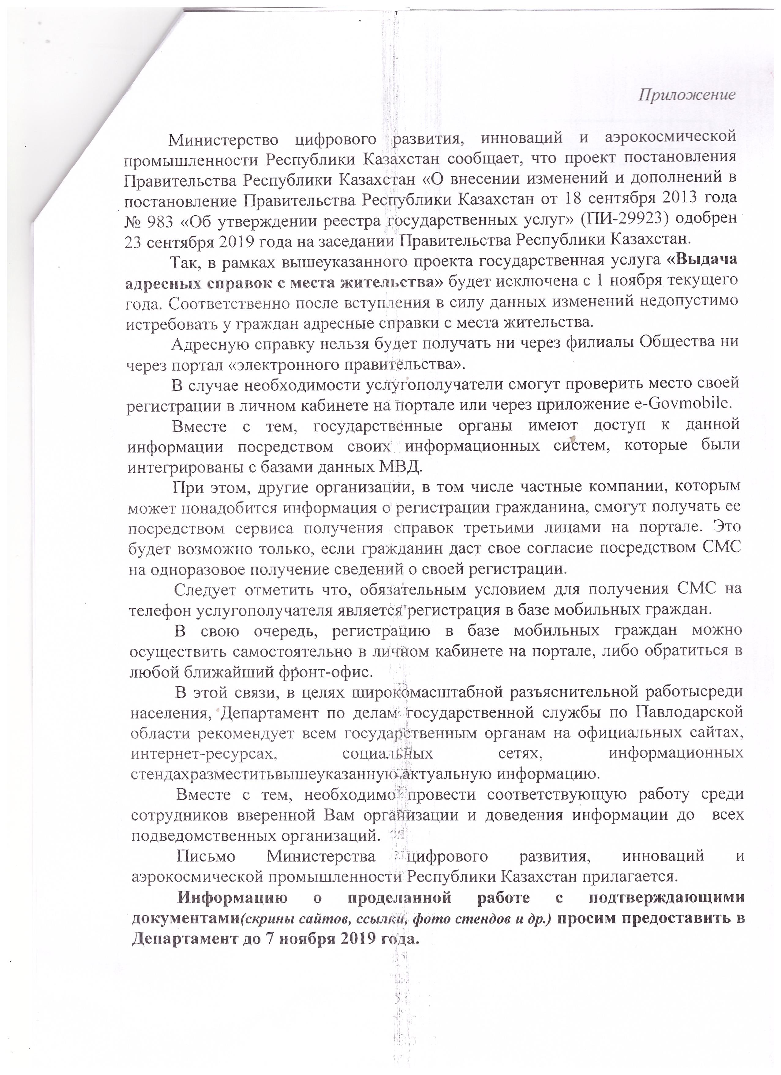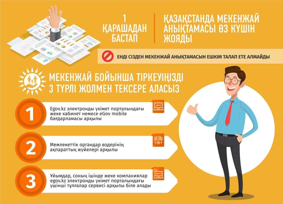 Азаматтардан мекен-жайы туралы анықтама талап етілмейді