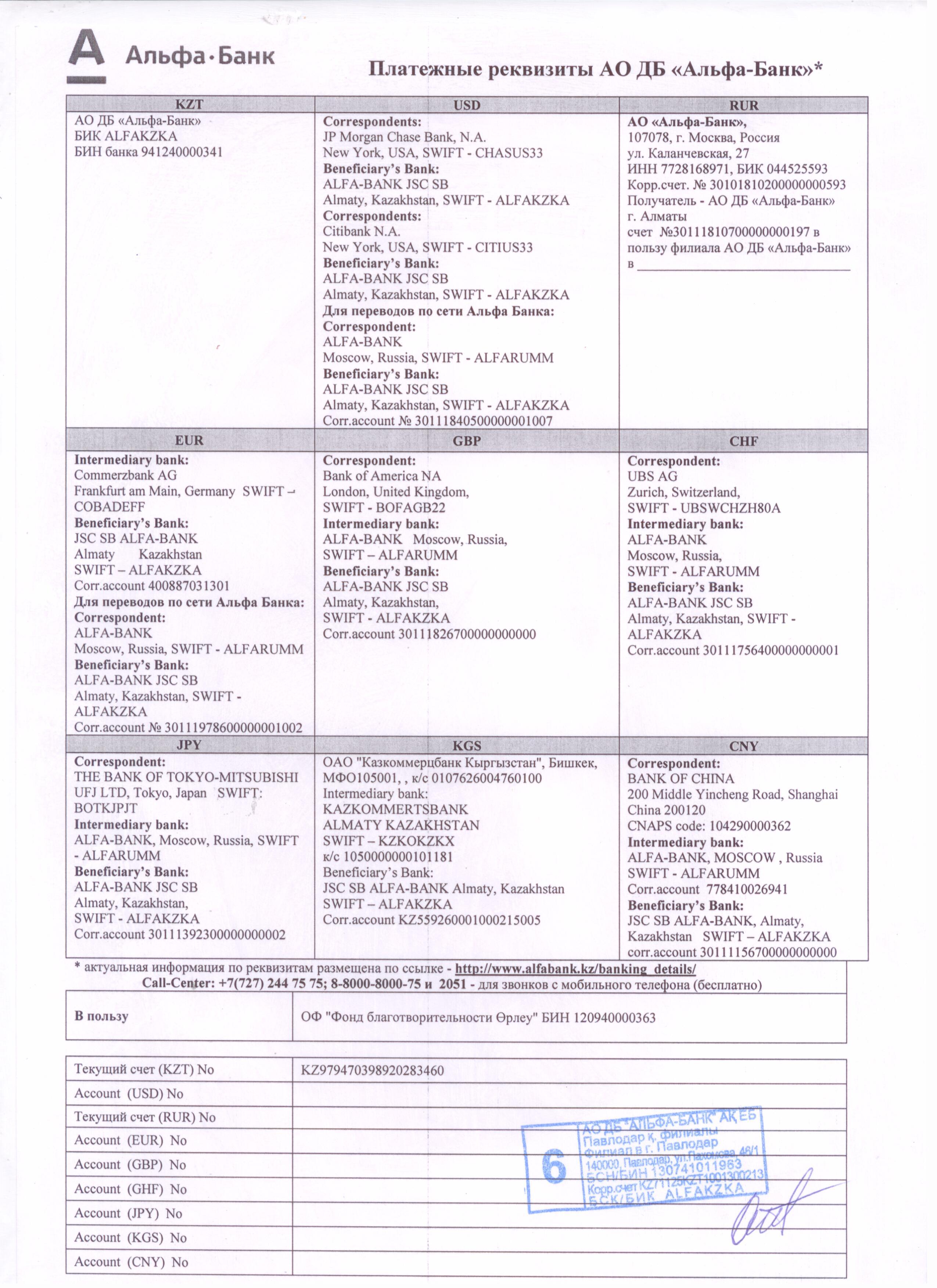 Қамқоршылар Кеңесінің банктік шоты туралы ақпарат | Скачать |