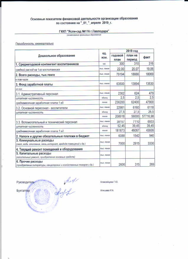 01.04.2019 ж. бойынша білім беру ұйымының қаржы қызметінің негізгі көрсеткіштері | көшіріп алу қарау |