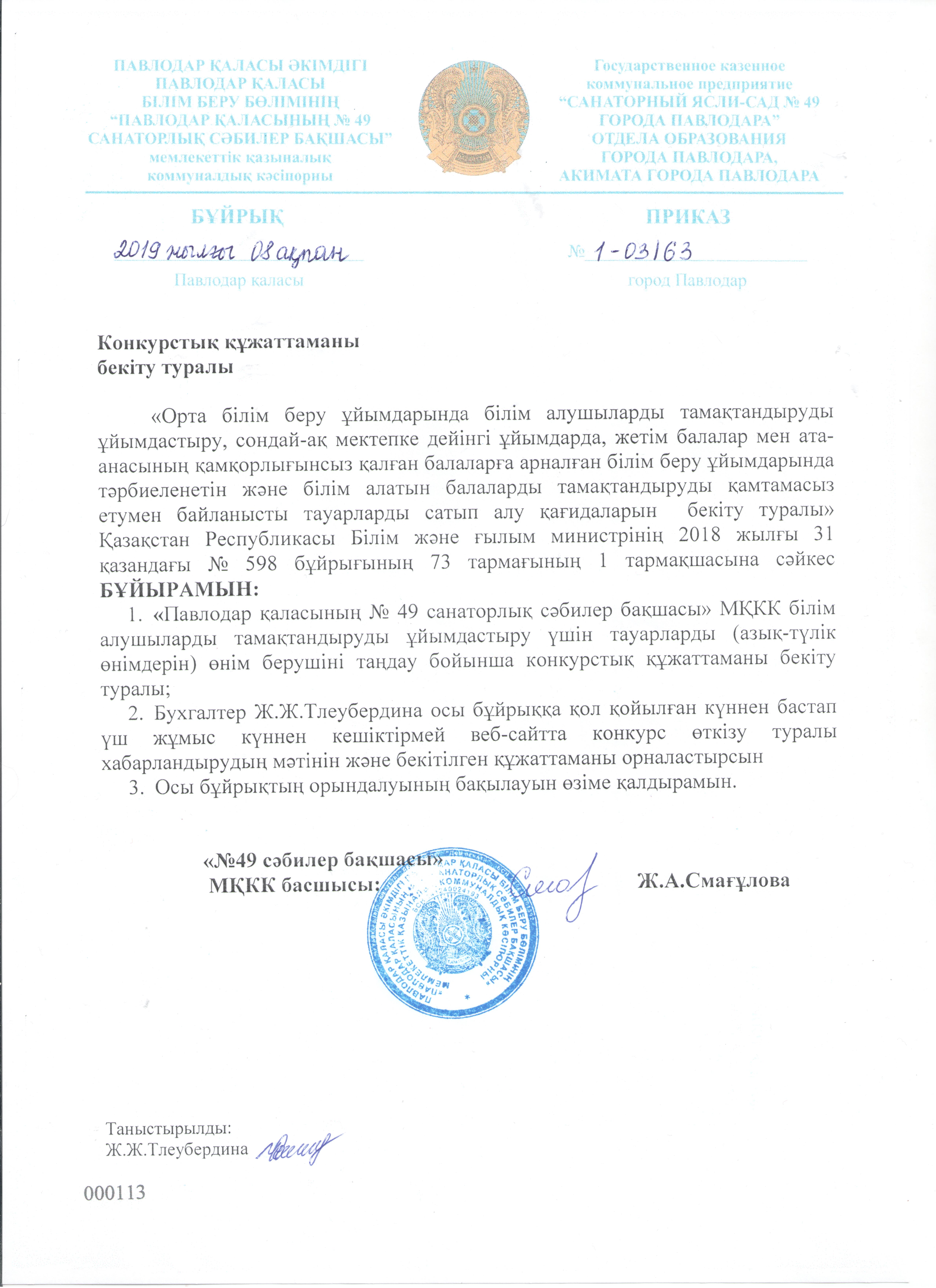 Қамқоршылық кеңесін құру туралы бұйрық | Скачать |