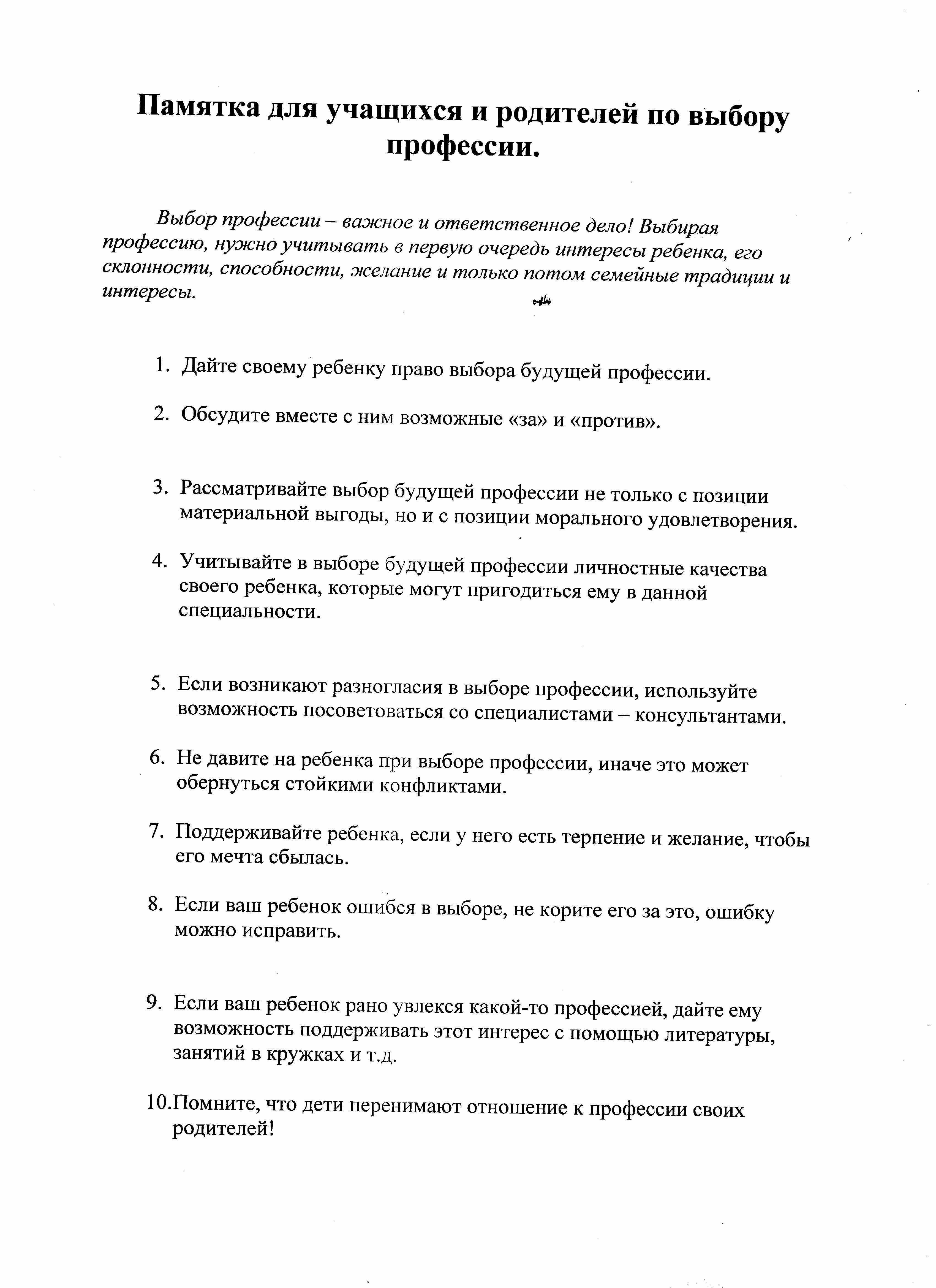 Рекомендации по выбору профессии | Скачать |