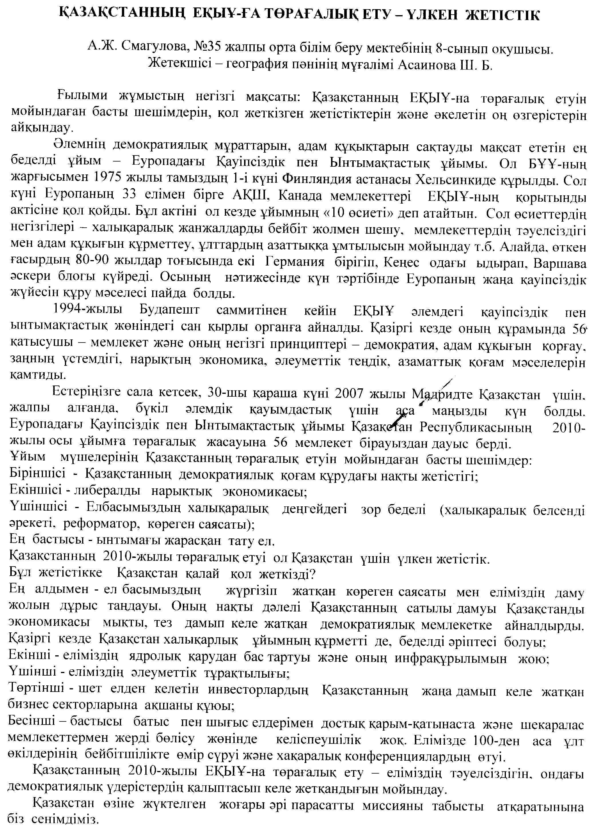 Ќазаќстанныњ ЕЌП¦-ѓа тµраѓалыќ ету - ‰лкен жетістік | Скачать |