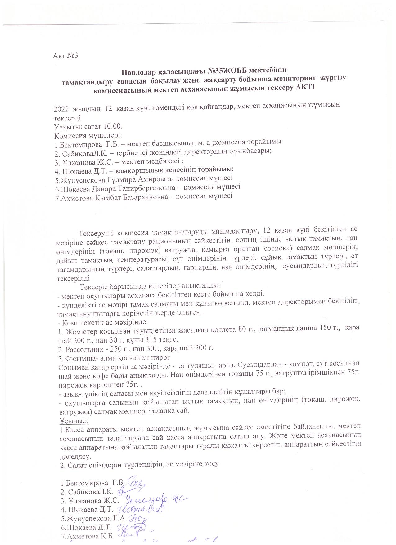 Павлодар қаласындағы №35 ЖОББМ тамақтандыру сапасын бақылау және жақсарту АКТІ №3 | Скачать |