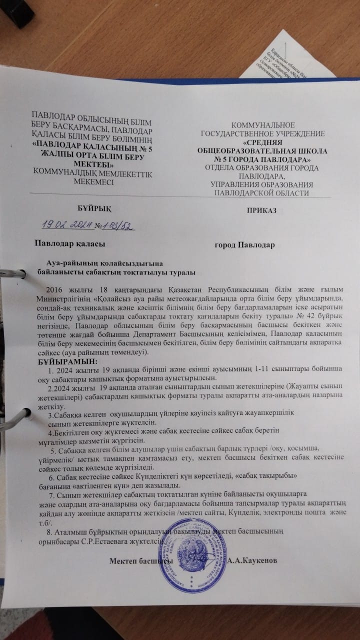 Об отмене занятий в связи с неблагоприятными погодными условиями (19.02.24)