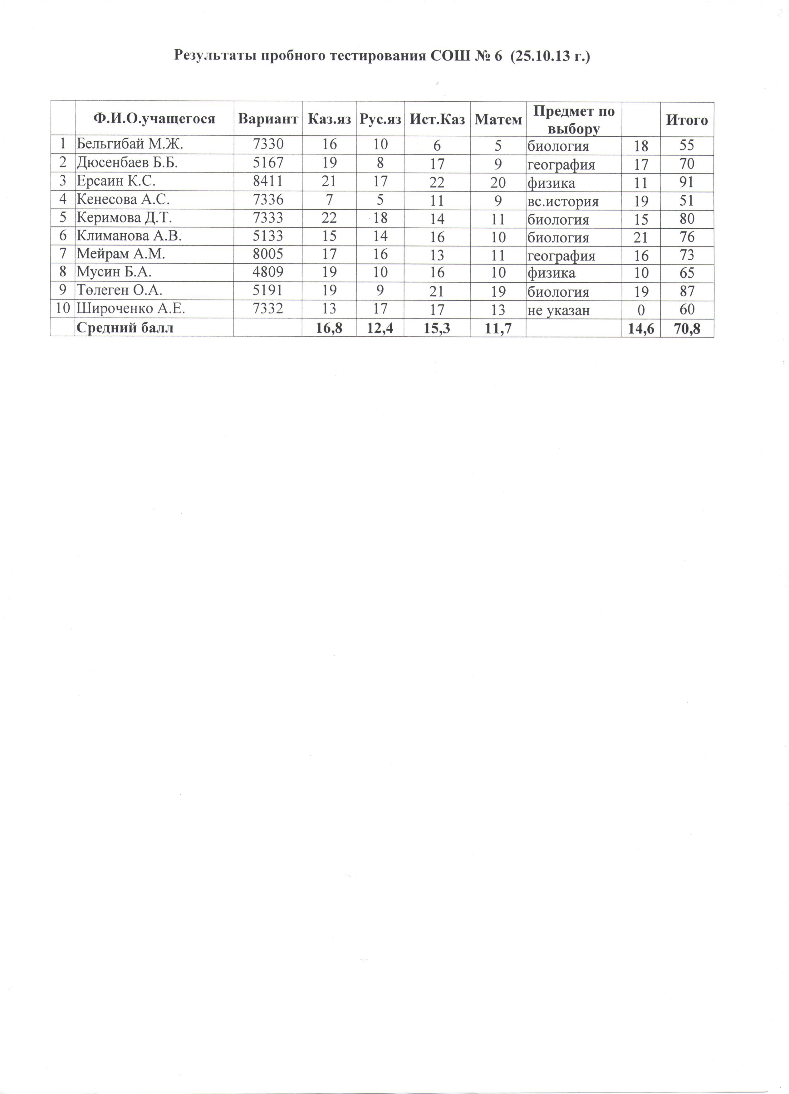 Результаты пробного тестирования учащихся 11а класса от 10.10.2013г | Скачать |