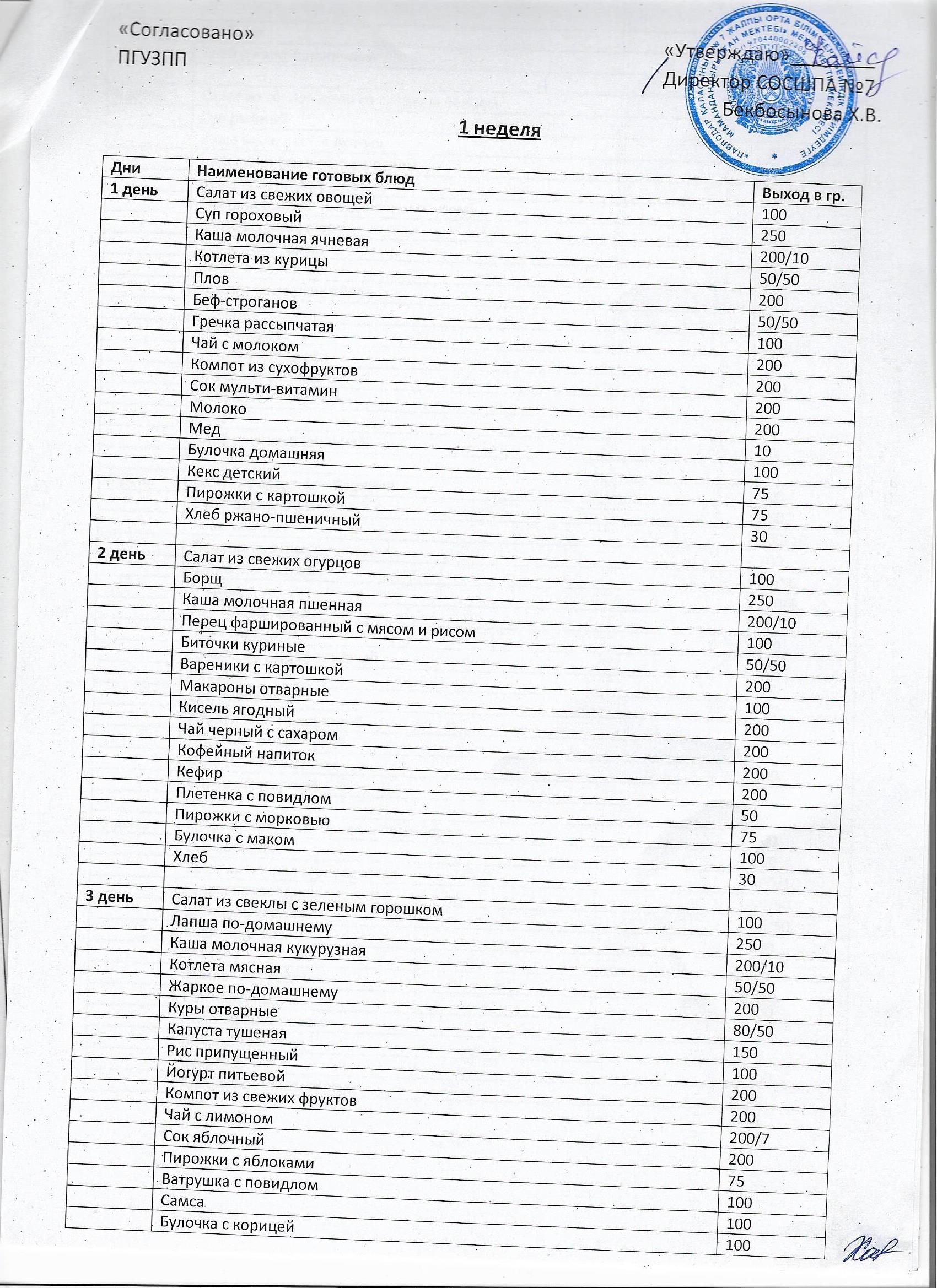 2018-2019 оқу жылына арналған перспективалық мәзір