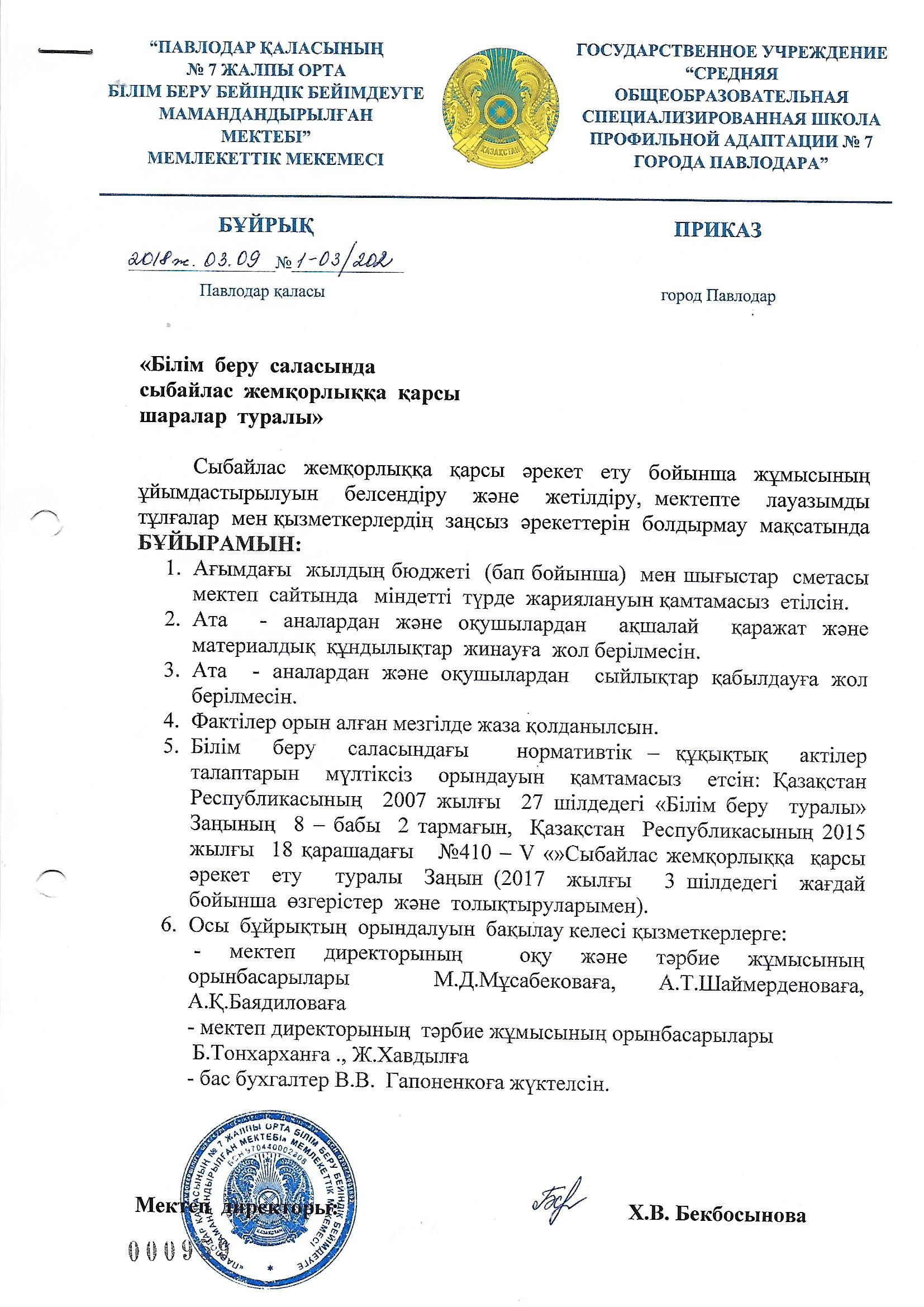 Приказ школы "О запрете сбора денежных средств с родителей" | Скачать |
