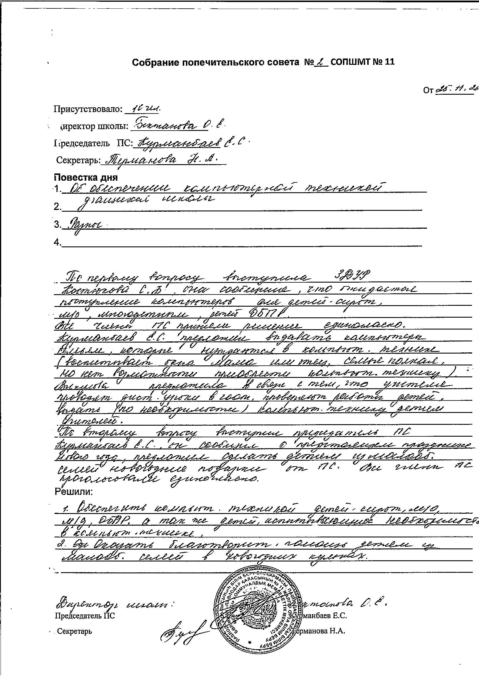 Собрание попечительского совета КГУ "СОШ №11" | Скачать |