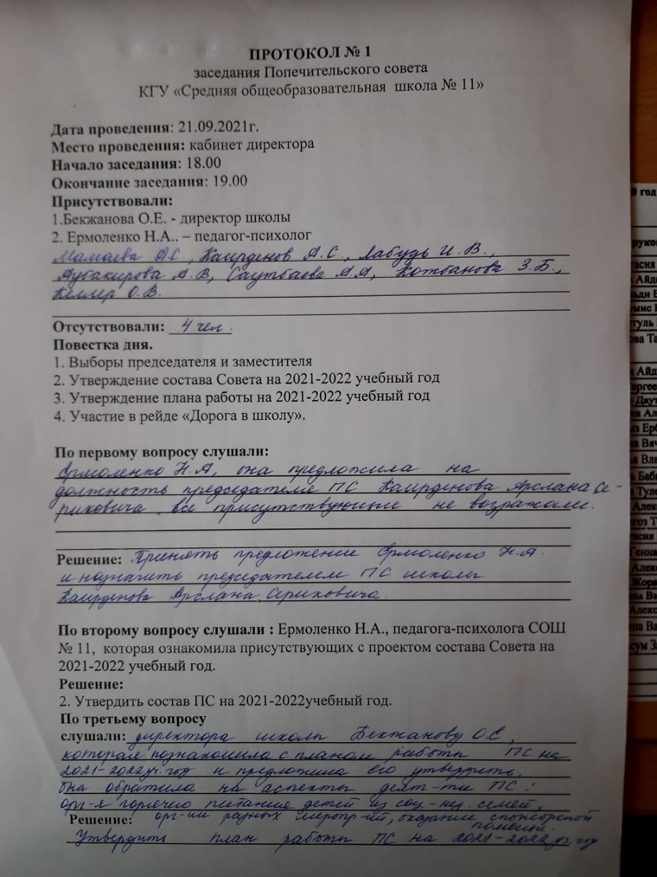 - Протоколы попечительского совета 2021-2022 учебный год
