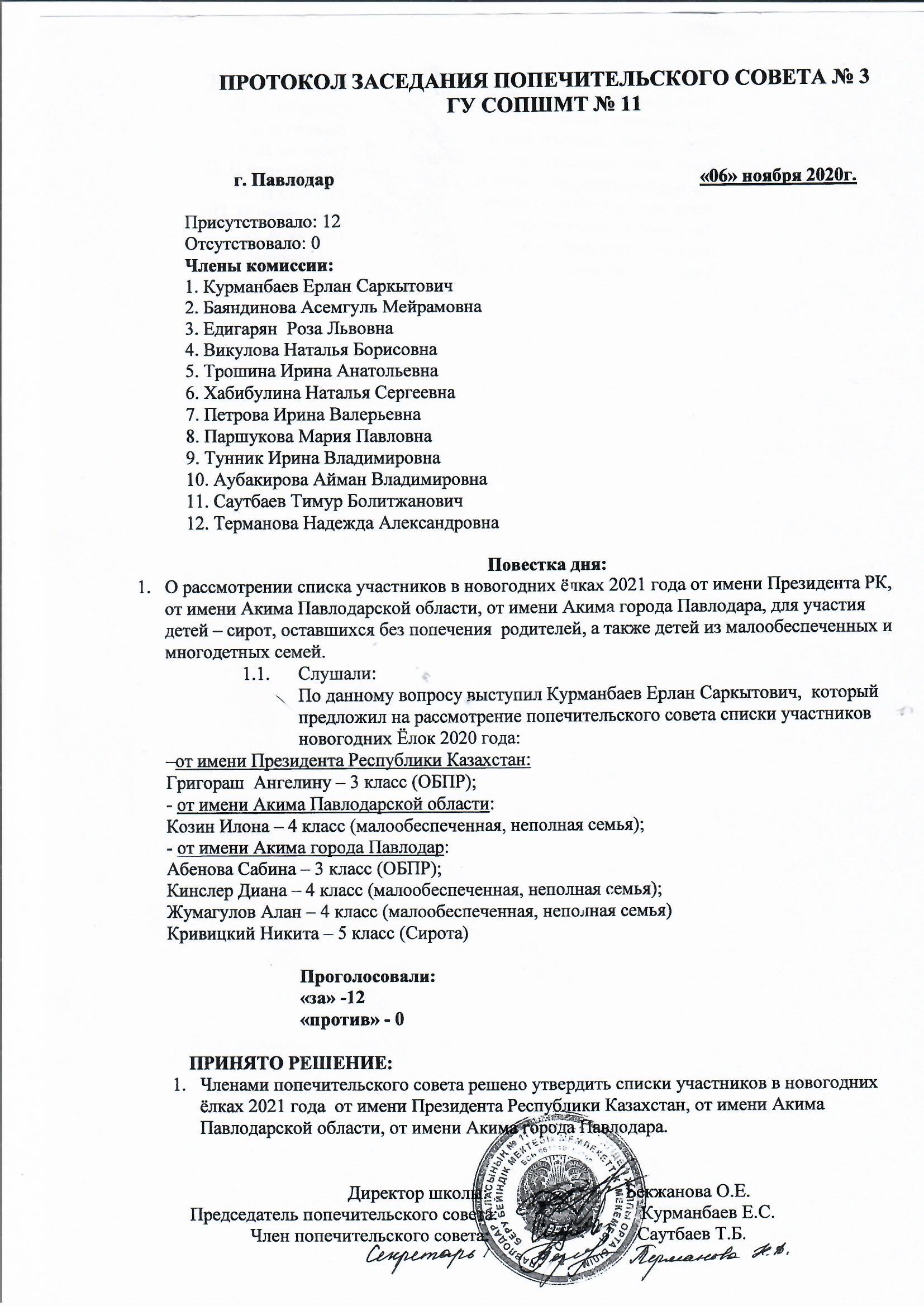 - №11 ЖББОМ ММ № 3 Қамқоршылық кеңес отырысының хаттамасы